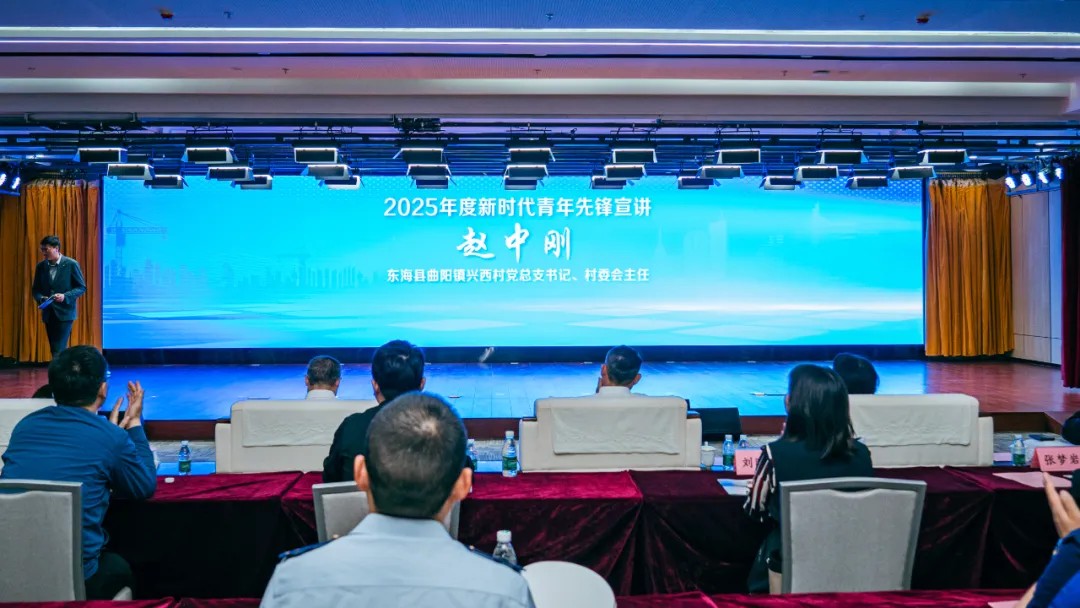 “2025年度新时代先锋”东海县曲阳镇兴西村党总支书记、村委会主任赵中刚,国网江苏连云港供电公司青年突击队代表赵曜先后就青年奋斗经验、青年突击队一线奋战情况作分享交流。