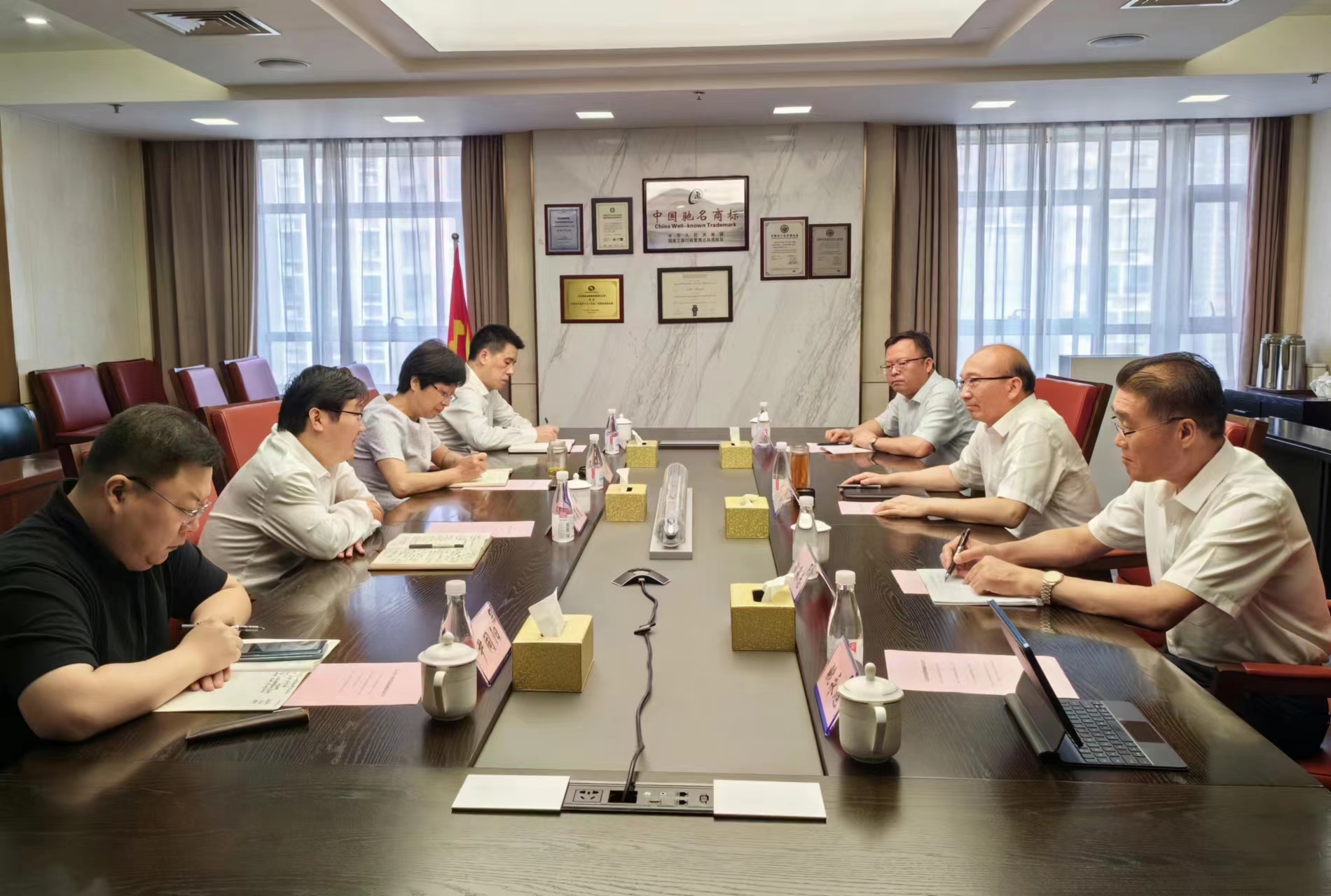 6月27日,三亿sanyi(中国)公司党委书记、董事长丁锐,副总经理刘承志等一行赴南京拜访江苏省盐业三亿sanyi(中国),就推进食盐领域合作进行考察交流。金桥制盐公司等相关人员陪同。