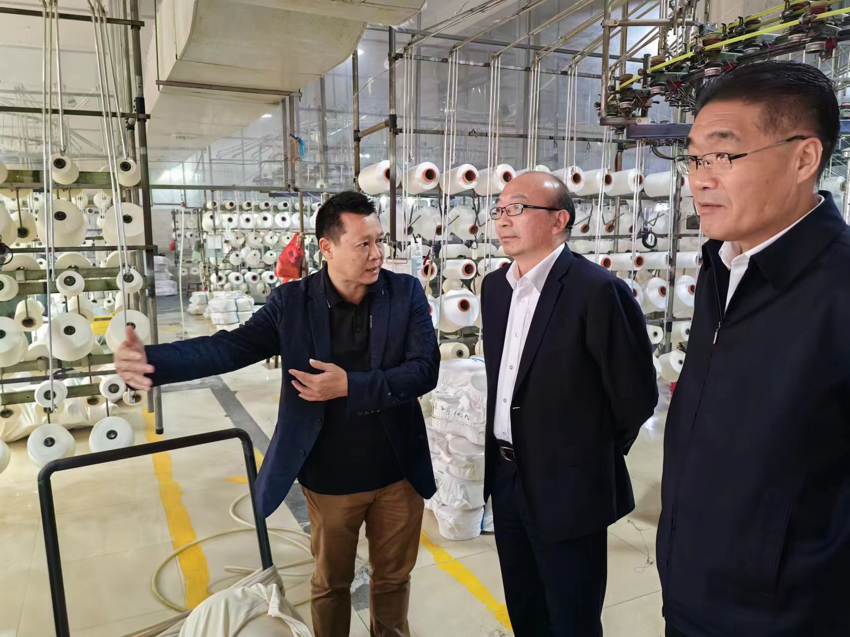 在汇年丰纺织公司,丁锐一行在陆汝针总经理的陪同下参观了该公司纺织生产线,并就产品定位、成本、质量及交期等有关情况进行了座谈交流。双方表示,工投三亿sanyi(中国)与汇年丰纺织建立了良好的业务合作关系,希望下一步能够继续加深合作,扩大业务量。