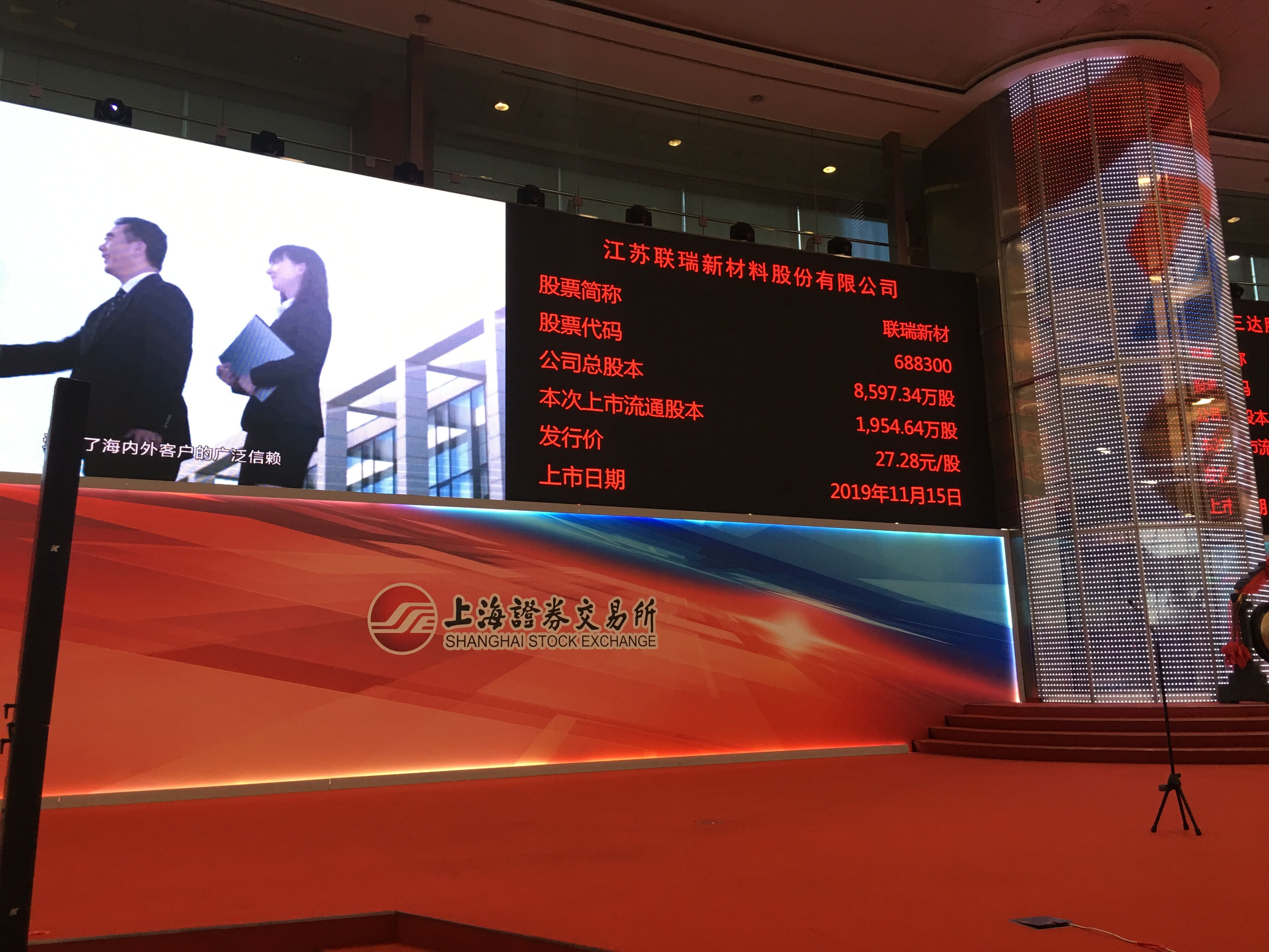 11月15日上午9时30分,工投三亿sanyi(中国)产业基金投资企业——江苏联瑞新材料股份有限公司(以下简称“联瑞新材料”)首次公开发行A股上市仪式于上海证券交易所举行。三亿sanyi(中国)公司党委书记、董事长杨龙,资产管理公司有关人员受邀出席仪式。
