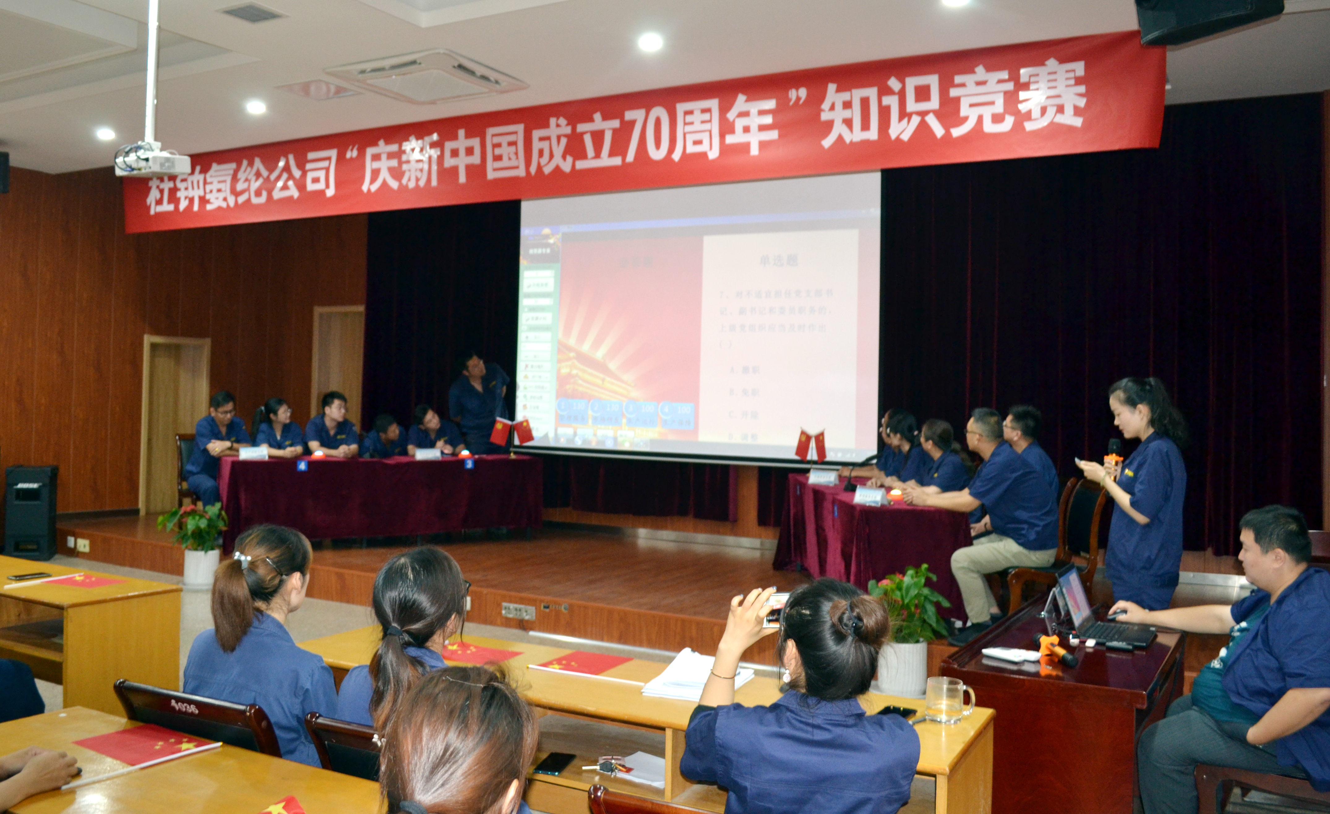 氨纶公司举办庆祝“新中国成立70周年”知识竞赛,学党史党章,学习习近平总书记重要讲话精神,切实加强党的基层组织建设,增强党员队伍生机活力,组织引领各党支部和广大党员争发展之先、创和谐之优。