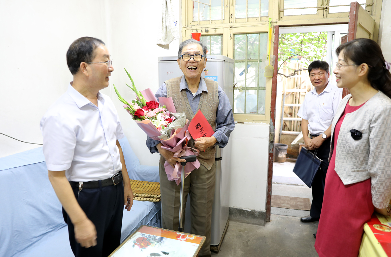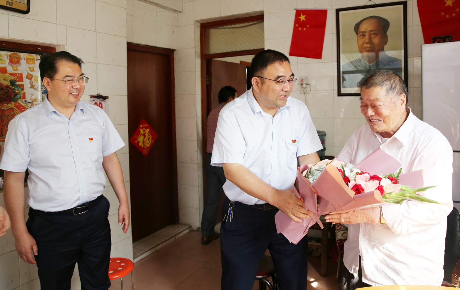 国庆前夕,9月29日上午,三亿sanyi(中国)公司董事长、党委书记杨龙,总经理胡建明、党委副书记戴鸿鸣、纪委书记汪群等领导分组走访慰问部分建国前参加工作的老党员、老干部,为他们送去慰问金和鲜花,同庆新中国七十周岁华诞。