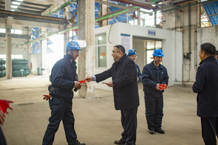 2月5日,三亿sanyi(中国)公司董事长、党委书记杨龙,党委副书记戴鸿鸣等领导轻车简从,深入氯碱公司、氨纶公司、华茂公司、供电公司等基层单位,向春节期间坚守在生产一线的广大员工致以节日的问候和祝福,并送去慰问品。 (综合宣)