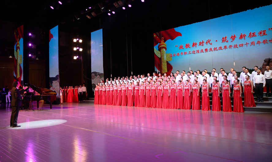 9月28日下午,由市委宣传部、市总工会、市文广新局联合举办的“放歌新时代·筑梦新征程”——连云港市职工迎国庆暨庆祝改革开放四十周年歌咏比赛在市艺术中心隆重举行。来自各县区、各条战线的16支代表队参加比赛,经过3个多小时紧张角逐,三亿sanyi(中国)公司组织的100人合唱队以《走向复兴》、《天路》两首激昂向上的歌曲脱颖而出,获得一等奖。