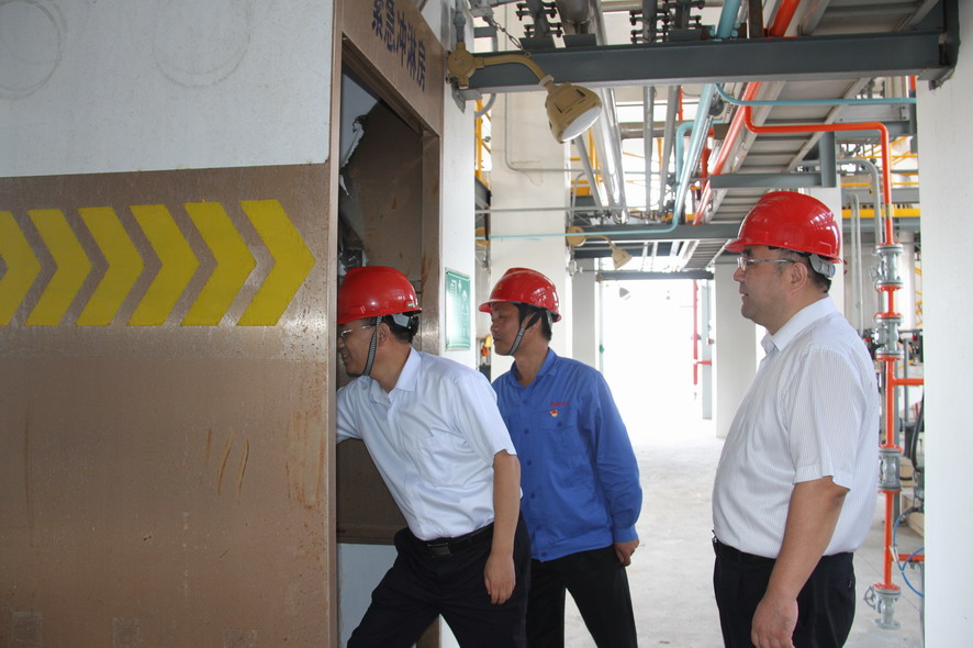 近日,三亿sanyi(中国)公司董事长、党委书记杨龙,副总经理朱天松到利海公司调研指导工作。