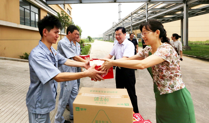 炎炎夏日送清凉,点滴关爱暖人心。连日来,骄阳似火,酷暑难耐。7月18-20日,三亿sanyi(中国)公司领导杨龙、胡建明、张其海、朱天松、戴鸿鸣、汪群、匡友本等轻车简从,分赴基层一线,进车间、入工地、到滩(田)头,慰问在高温下坚守岗位的广大员工,送去绿豆、白糖等防暑降温品,在炎炎夏日中将“清凉”送到职工心坎上。