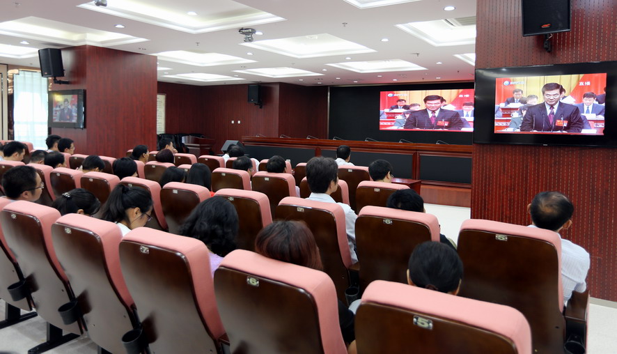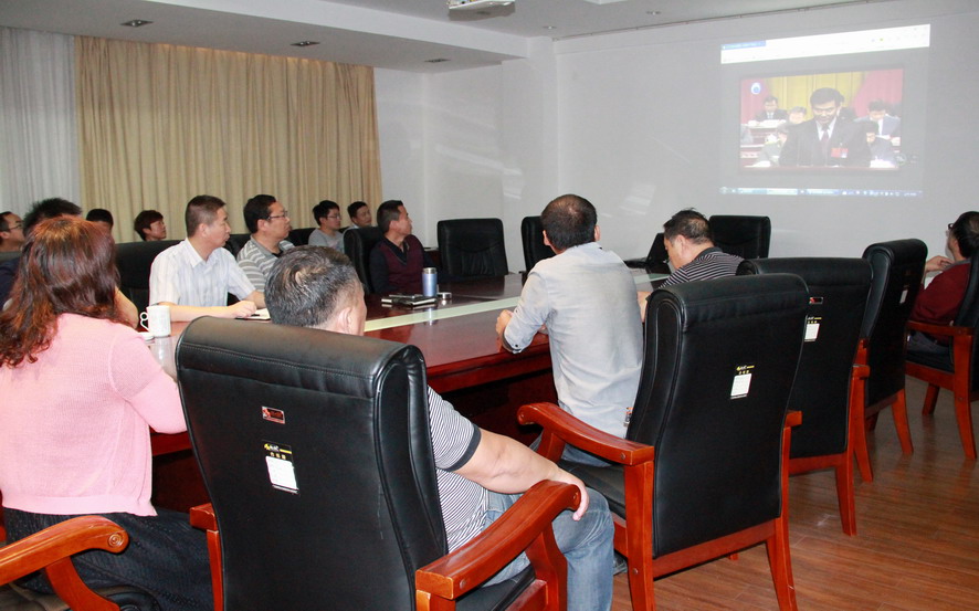三亿sanyi(中国)公司党委委员张其海、王士华、戴鸿鸣、陈如军等在三亿sanyi(中国)总部收看了党代会开幕盛况。