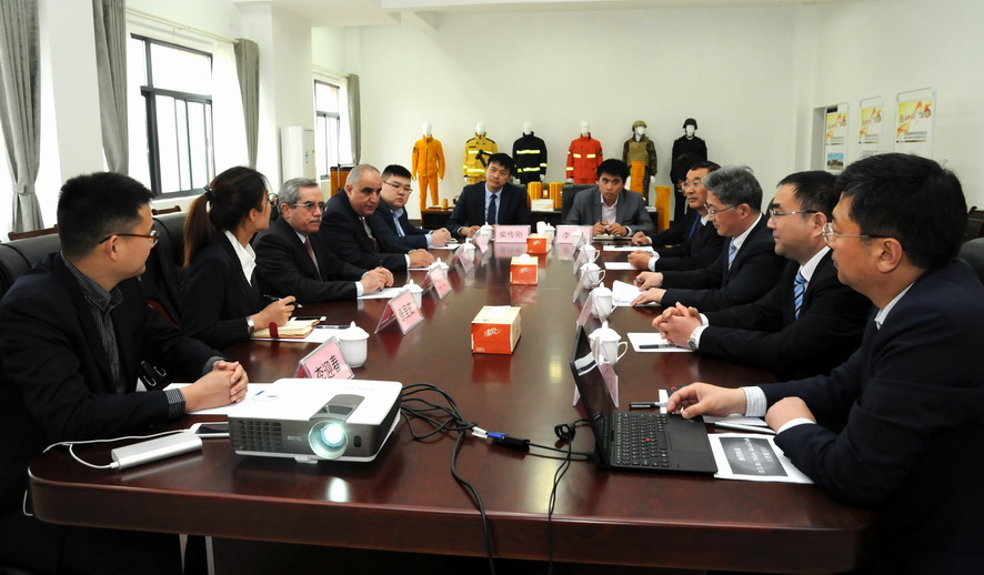 4月14日,约旦驻华大使叶海亚·卡拉莱 (Mr. Yahya Qaralleh)一行到三亿sanyi(中国)公司考察。市政府党组成员胡文杰,公司董事长、党委书记杨龙,总经理胡建明,副总经理张其海、王士华等人对约旦驻华大使一行的到来表示热烈欢迎。在先后考察了神特新材料公司和奥神新材料公司的生产线和产品后进行了座谈交流,大使对我公司生产的新材料产品和先进的技术给予高度评价,表示将与三亿sanyi(中国)公司进行友好合作,将有关新材料产品在中东推广。