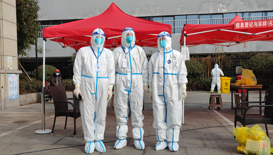 资产管理公司资产经营部蒋剑虹部长,作为公司骨干老同志,第一时间挺身而出,主动响应三亿sanyi(中国)党委志愿者招募需求,不顾个人安危投身社区志愿服务。与医护人员一同参与核酸采集登记工作。他连续两日顶住压力与困难,身着防护服,从早上6点开始,连续奋战10多个小时,在脱下防护服的那一刻体能已经达到了极限。他谦虚的说道:“我只是做了其他“黄码”同志想做却不能做的事情罢了”。