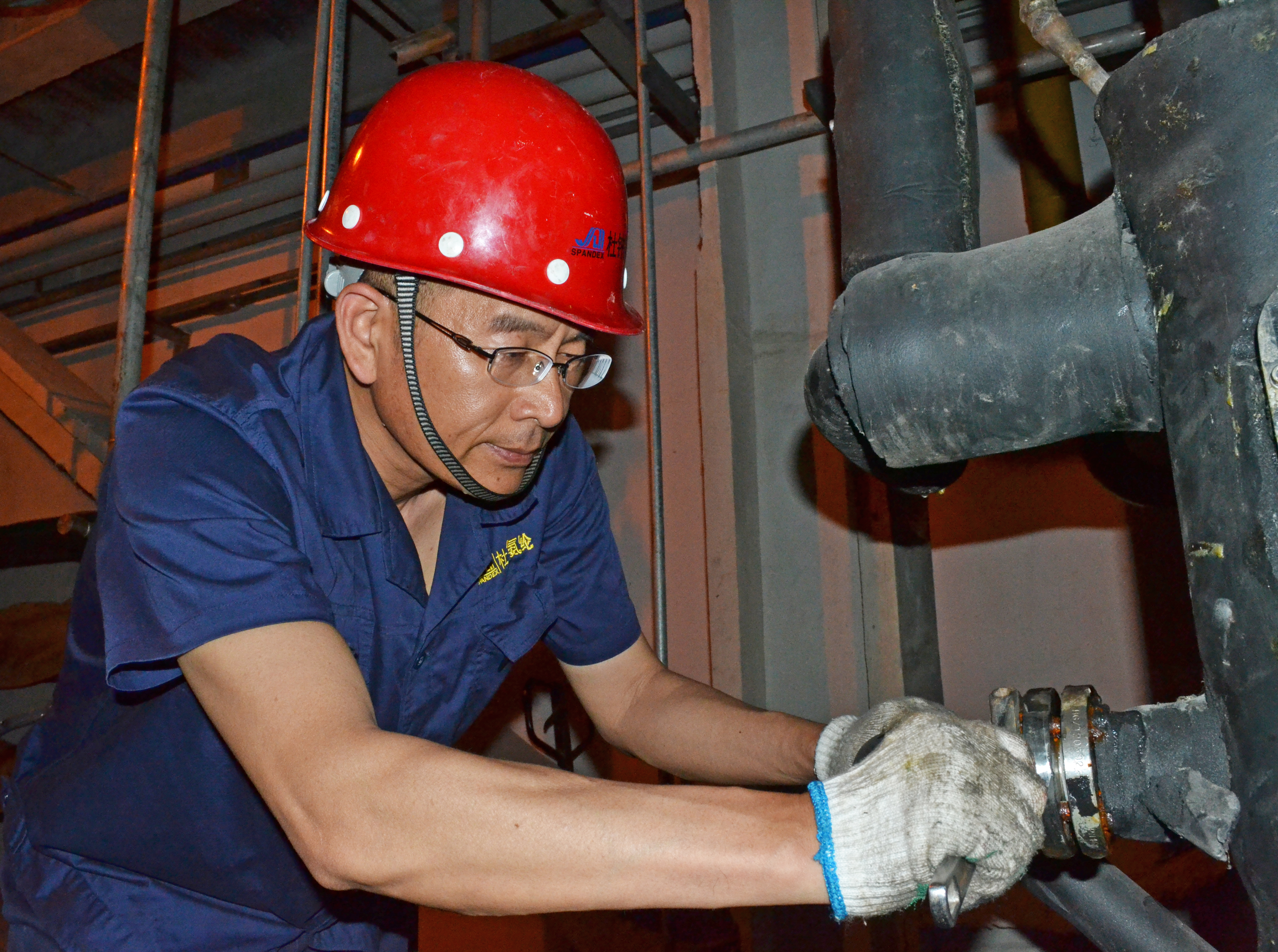 27年间,他见证了氨纶公司的沧桑变化,与公司日渐血脉相融,呵护每一台设备就像是宠爱自己的孩子一般。2017年,6期精制塔塔压力异常,经多人检修始终不能找到症结所在,胡师傅带领员工亲自上阵,经过一个昼夜的努力将问题解决,设备恢复正常运转;2018年,企业面临的环保安全压力越来越大,胡师傅又把关注点放在6期废气处理方面,他牵头自己设计、自己动手,利用废旧材料制作水槽喷淋系统,有效减少了废气排放的同时,保证了六期精制工艺稳定,6期精制成为全厂精制生产的标杆;2019年,公司开展节能降耗活动以来,胡师傅大力推进8期精制DMAC废液回收再利用,据不完全统计,按照他的建议与方法, DMAC吨丝消耗已由85公斤减少到75公斤,已为公司节省数十万元,并且还有继续下降空间;经过胡师傅研究改进,使得6期聚合开车减少原液浪费一半以上……这样的例子举不胜举。