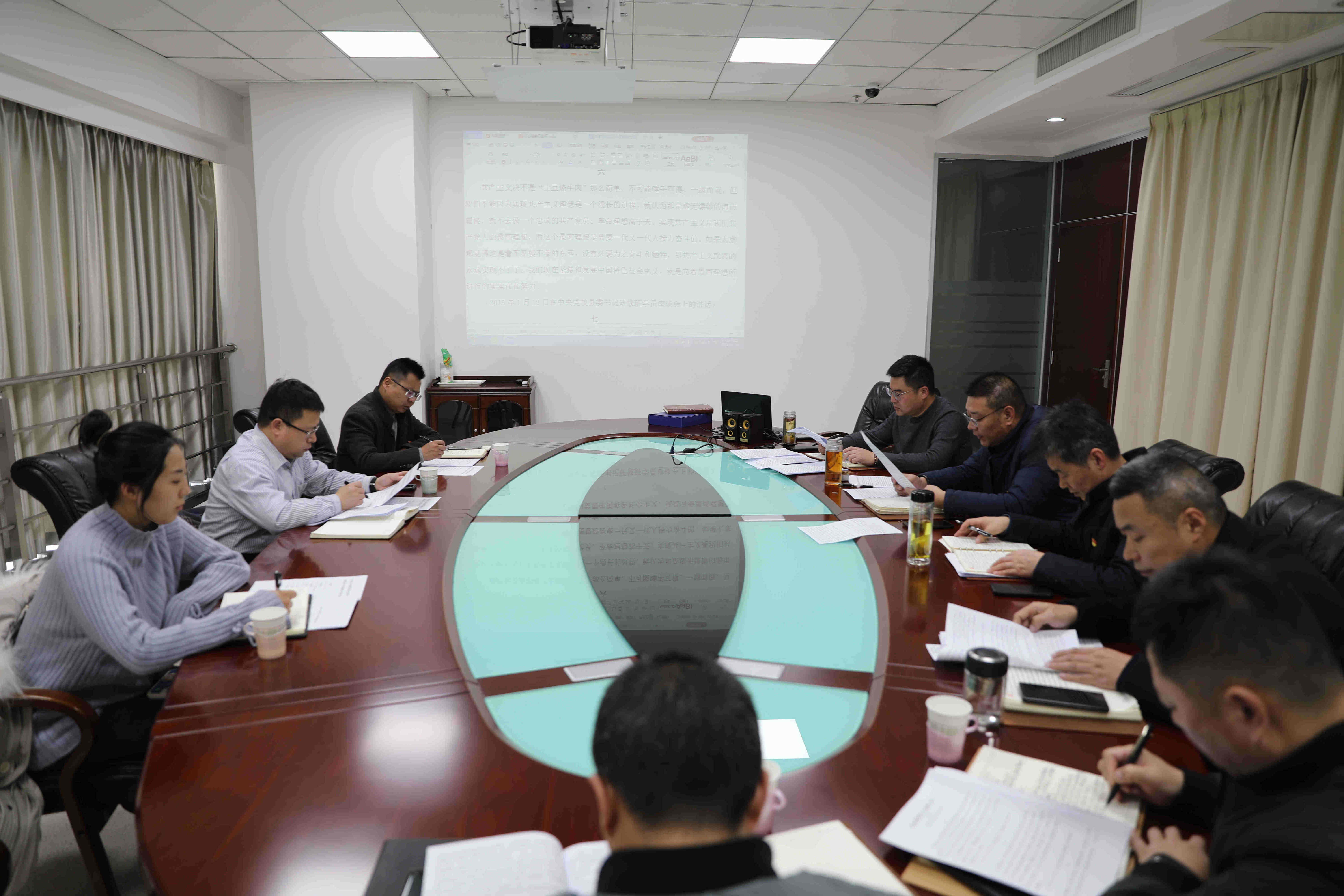 会上,党委书记、总经理孙政权带领大家观看视频《中国共产党第十九届中央委员会第六次全体会议公报》,并学习了文章《坚定理想信念 补足精神之钙》,中心组成员围绕学习领悟体会结合自身实际工作进行交流发言。