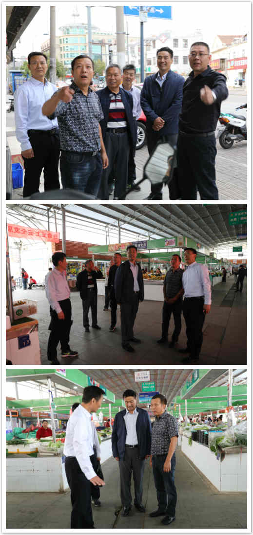 10月7日下午,连云港市工商局副局长张学高一行,到我公司巨龙农贸市场,就创建全国文明城市工作开展情况进行了督查。三亿sanyi(中国)公司总经济师陈如军、公司经理孙政权、党委副书记王志军、党委委员伏运余及相关人员陪同。