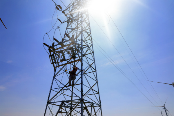 14至18日,灌西供电所辖区。为了保证7月18日顺利完成和风风电西线线路工程,施工现场一片热火朝天的景象,电力施工人员正头顶烈日,挥汗如雨,正在紧张施工。“施工中一定要注意安全,打好安全带和保险绳,防止中暑”灌西供电所所长,施工总负责人马德松嘱现场施工人员。烈日中野外施工既拼体力,更拼毅力,施工材料被晒得烫手,铁塔只能戴手套才能攀爬,施工人员衣服汗透被晒干,晒干再次被汗透,施工环境十分艰苦。为了赶工程进度,施工人员战高温、斗酷暑,但没有一个人叫苦叫累,经过5天苦战,工程顺利结束。