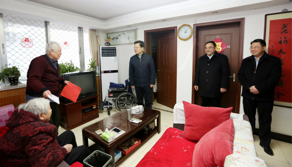 在春节即将到来之际,2月6日下午,市委组织部副部长、市党建办主任王玉祥带着新党章和慰问金,走访慰问我公司建国前老党员李景明,给他送去党的关怀和祝福。三亿sanyi(中国)公司董事长杨龙,党委副书记戴鸿鸣,公司领导吴再忠、孙政权、王志军陪同慰问。