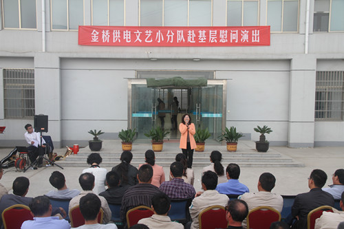 近日,为庆祝建国65周年,进一步践行党的群众路线,丰富基层职工文化生活,公司工会组织文艺小分队深入供电所等基层单位巡回慰问演出,为一线职工送去精彩纷呈的“文化大餐”,赢得了基层职工群众一致好评。 在临时搭建的舞台上,文艺小分队自编自演的的歌舞、相声、诗朗诵、器乐弹唱等丰富多彩的节目,贴近基层,贴近生活,讴歌金桥供电十年成就,展示金桥供电职工风采,赢得了现场观众阵阵掌声。中间还穿插了击鼓传花观众互动节目,基层职工踊跃参与,气氛活跃。最后,演出在会场全体人员齐唱《歌唱祖国》中圆满落下帷幕。 公司自成立以来,一直注重企业文化建设,利用多种形式活跃基层文化生活,满足员工多层次、多角度的精神需求。不仅加强基层单位“职工小家”建设,建立了“职工书屋”、职工活动室、乒乓球室、羽毛球活动场地等基础设施,还举办了职工运动会、篮球赛和文艺演出等活动。不仅发挥传统职工文化活动的优势,而且还创新具有时代特色文化活动的形式,不断增强员工的凝聚力和向心力。通过本次深入基层慰问演出,不仅为战斗在一线的基层职工献上一份精神“大餐”,同时也展示了金桥供电的良好作风和企业形象。(赵艳)