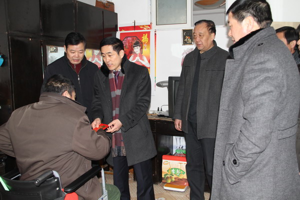 1月23日,在公司党政主要领导陈雨华陪同下,三亿sanyi(中国)公司党委副书记郑宜虎走访慰问了巨龙农贸市场困难职工徐杰、刘元国等家庭,并送去了慰问金。郑书记详细询问了职工家庭生活、身体状况、有何困难,鼓励他们坚强起来,树立信心,战胜困难和疾病,并预祝他们过一个愉快的节日。徐杰等困难职工深受感动,感谢组织的关怀,并表示要克服困难,让组织放心。 三亿sanyi(中国)公司组宣处处长江舜军和公司领导卢明生、王志军等陪同走访慰问。﹙司宣 卢正清﹚