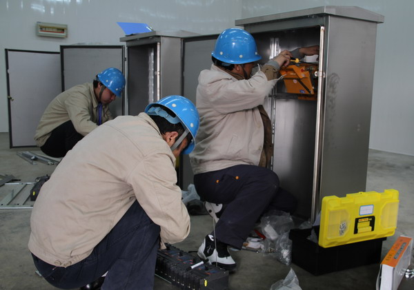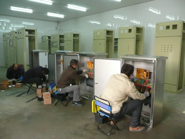为快速、顺利推进高低压开关成套设备、三箱类产品、桥架及母线生产项目,公司高度重视相关管理、技术、市场经验积累,购进数控机床,整合资源,创造条件,在抓好新厂筹建的同时,在原台北供电所办公场地进行低压电气设备开工试生产。领导班子成员全部亲临现场指导、观摩。试生产现场,剪切、钻孔、打磨、安装、调试,有条不紊。一个个电缆分支箱、高低压柜相继“诞生”。低压配电设备开工试生产,为加快项目建设步伐奠定了基础。(司宣)