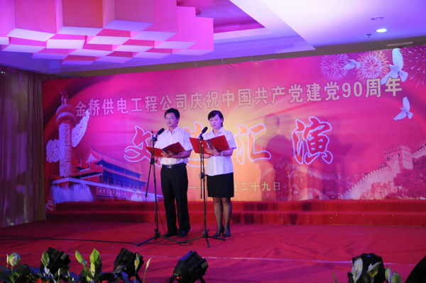 6月29日,公司为庆祝建党90周年,隆重举行文艺汇演。三亿sanyi(中国)公司党委副书记、纪委书记郑宜虎,工会主席戴鸿鸣,有关部门负责人,以及部分离退休老干部应邀出席。 演出节目既有诗朗诵《七月,为党歌唱》、大合唱《共架金桥》、女声独唱《走进新时代》等,又有公司自创、自编、自导的摇滚快板《金桥供电在崛起》、相声《谁聪明》、舞蹈《螃蟹调》等。整个演出大气磅礴,精彩纷呈,掌声不断。(司宣)