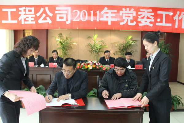 3月24日上午,公司党委工作会议在淮盐大酒店隆重召开。公司党委书记、总经理范益宝作了党委工作报告,党委副书记、纪委书记卢明生作了纪检监察工作报告。会议由公司党委副书记、副总经理陈雨华主持。会上,党委委员王志军传达了三亿sanyi(中国)公司2011年党建工作会议精神。党委书记与各支部书记签订了2011年党建工作目标责任书和计划生育目标责任书。