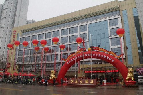 4月18日,淮盐大酒店隆重开业,新浦区政府、三亿sanyi(中国)公司及市、区有关部门领导、三亿sanyi(中国)所属单位党政工领导参加开业庆典。