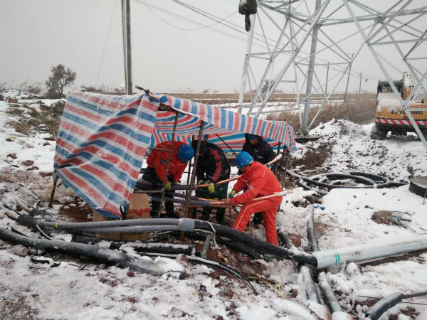 近日,持续的低温大雪天气,港城银装素裹,让三亿官方网站真切地感受到深冬的寒冷,人们宁可闲在家里,也不愿意外出,但是在公司35kV和风风电的施工现场,工人们正冒着严寒加紧电缆敷设和电缆头制作,全面掀起冬季施工大干热潮。 2018年新年临近,为完成年前的施工节点目标,项目负责人带领员工们冒着大雪严寒奋战在施工一线,不怕雪天的寒冷,他们仍然坚守在岗位上,忘记节假日的休息时间,加班加点施工,员工们干劲十足,精神饱满,全身心投入到紧张的工作中。(电宣)