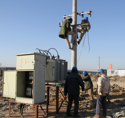 近日,台北供电所组织职工为金海连云新城医院项目安装临时用电,图为施工现场。(电宣)