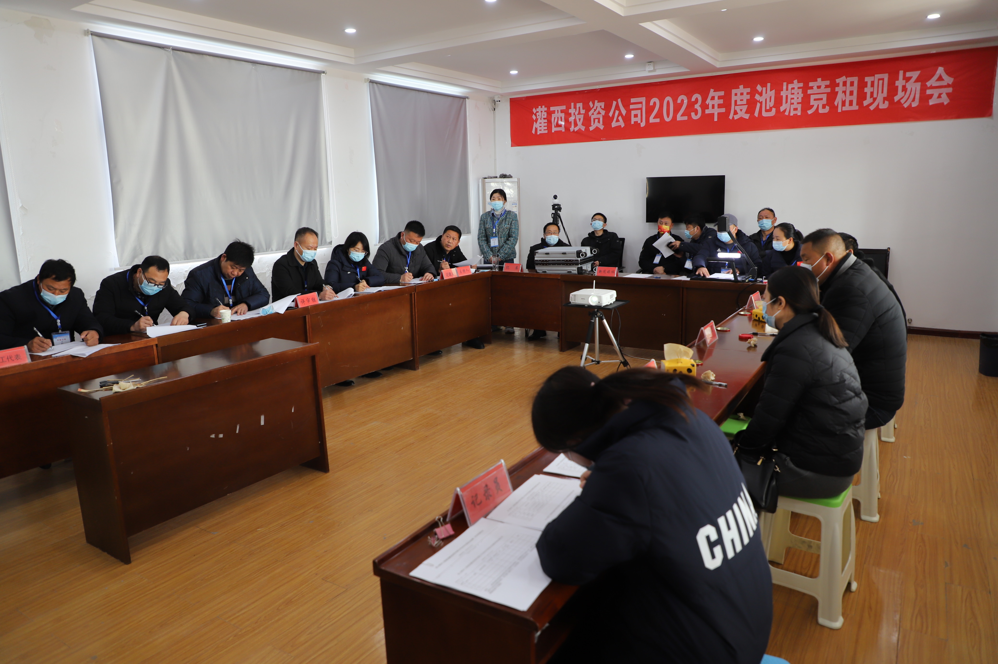 3月25日,灌西投资公司在综合服务中心三楼会议室举行了2023年度水产养殖池塘竞租现场会,对灌西投资公司及西旺公司23个号段5300余亩池塘进行公开竞租,取得圆满成功。