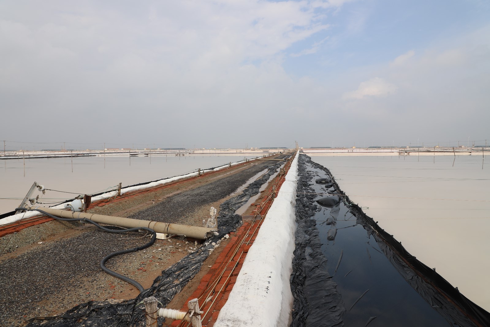 同心支援有温度。受当晚突发的狂风暴雨强对流天气,导致日晒制盐公司38根电线杆被暴风折断、60块结晶池塑布受损,20块塑布需要更换,130余间值班房及机房屋顶瓦面损坏,给盐业生产造成严重安全隐患。6月14日凌晨5点,来自于该公司各条战线近180人,支援抢险抢时抢工,进行结晶池塑布安装、废弃物清理等工作;来自灌西供电所、徐南供电所的兄弟单位14名专业电工,第一时间到生产现场进行清除电力故障、更换电线杆等电力工程作业。充分展现三亿官方网站工投人在困难面前同力协契、踔厉奋发的拼搏精神,为企业高质量的安全发展奠定坚实基础。