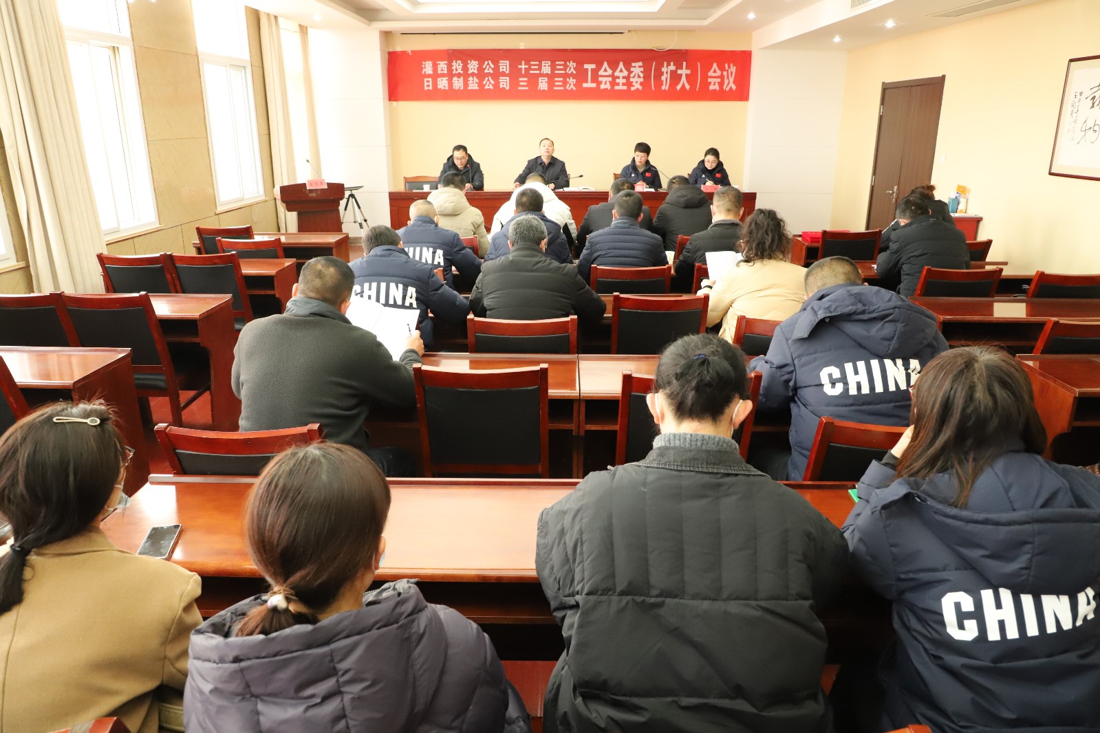 3月1日,灌西投资公司召开十三届三次、日晒制盐公司三届三次工会全委(扩大)会议,公司党委书记、董事长、总经理李国文出席会议并讲话,工会主席王宏作工作报告。工会委员会全体委员,各单位工会主席、女工委主任参加会议。