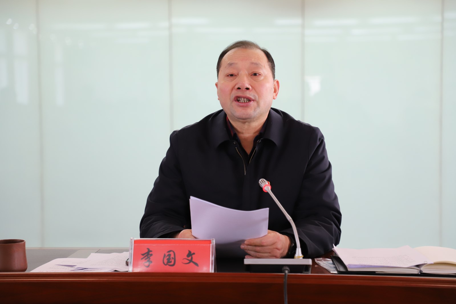 党委书记、董事长、总经理李国文作《全面从严治党工作报告》,纪委书记朱文海同志作《纪检工作报告》;埒南制盐公司、社区管理中心、宵洋物流等十五个支部签定了《党建工作目标责任书》和《全面从严治党责任书》。