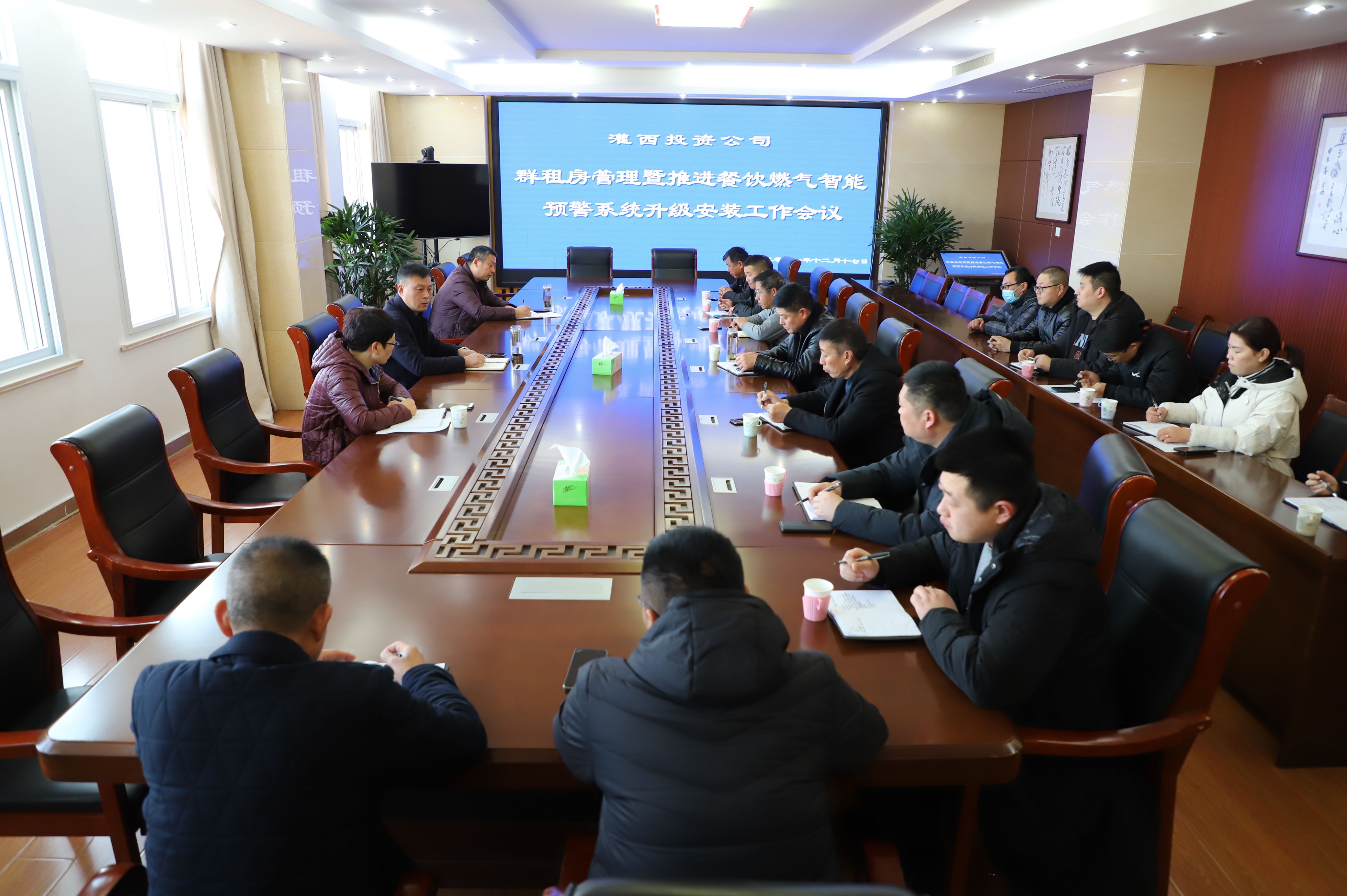 12月17日上午,灌西投资公司在机关三楼会议室召开“群租房管理暨推进餐饮燃气智能预警系统升级安装”工作会议,公司常务副总经理吴卫平、工会主席王宏、安全监管部以及各单位负责人参会。