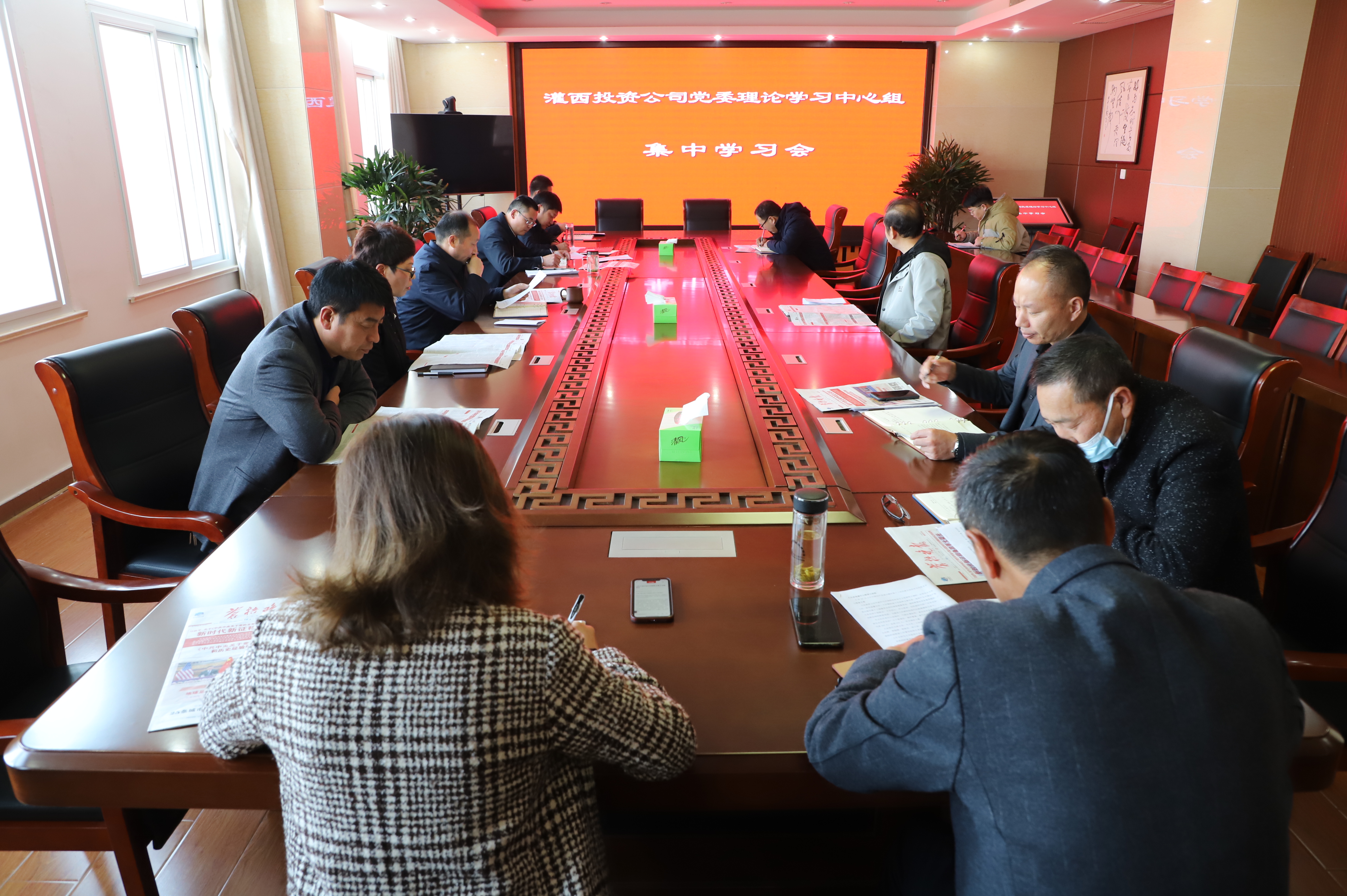 11月19日下午,灌西投资公司党委召开十一月份中心组学习会,深入学习贯彻党的十九届六中全会精神。公司领导班子全体成员、党群部门负责人等参加学习。