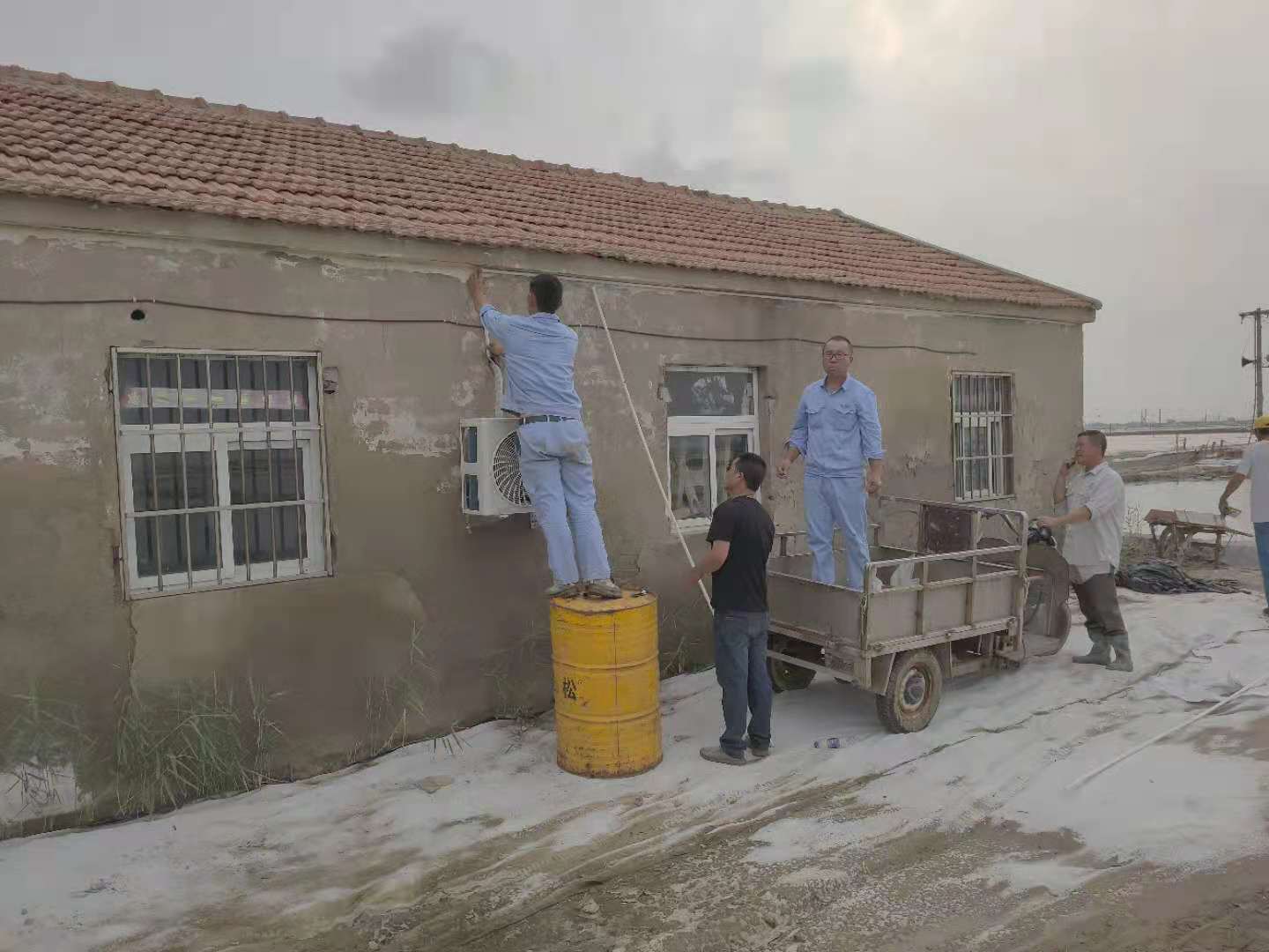 高温酷暑、炎炎烈日下,在日晒制盐的滩头到处都是大汗淋漓、被晒得黝黑的盐工们,因为他们的坚守和辛勤付出,才有了公司屡创佳绩的今天。“值班室太热了,夜间值班无法休息。”盐工有诉求,组织有回应,公司为此按程序集中采购了一批空调。为能更快更好将空调安装至各班组值班室,维护工们不辞辛劳与安装人员一起加班加点,现已全部安装到位。