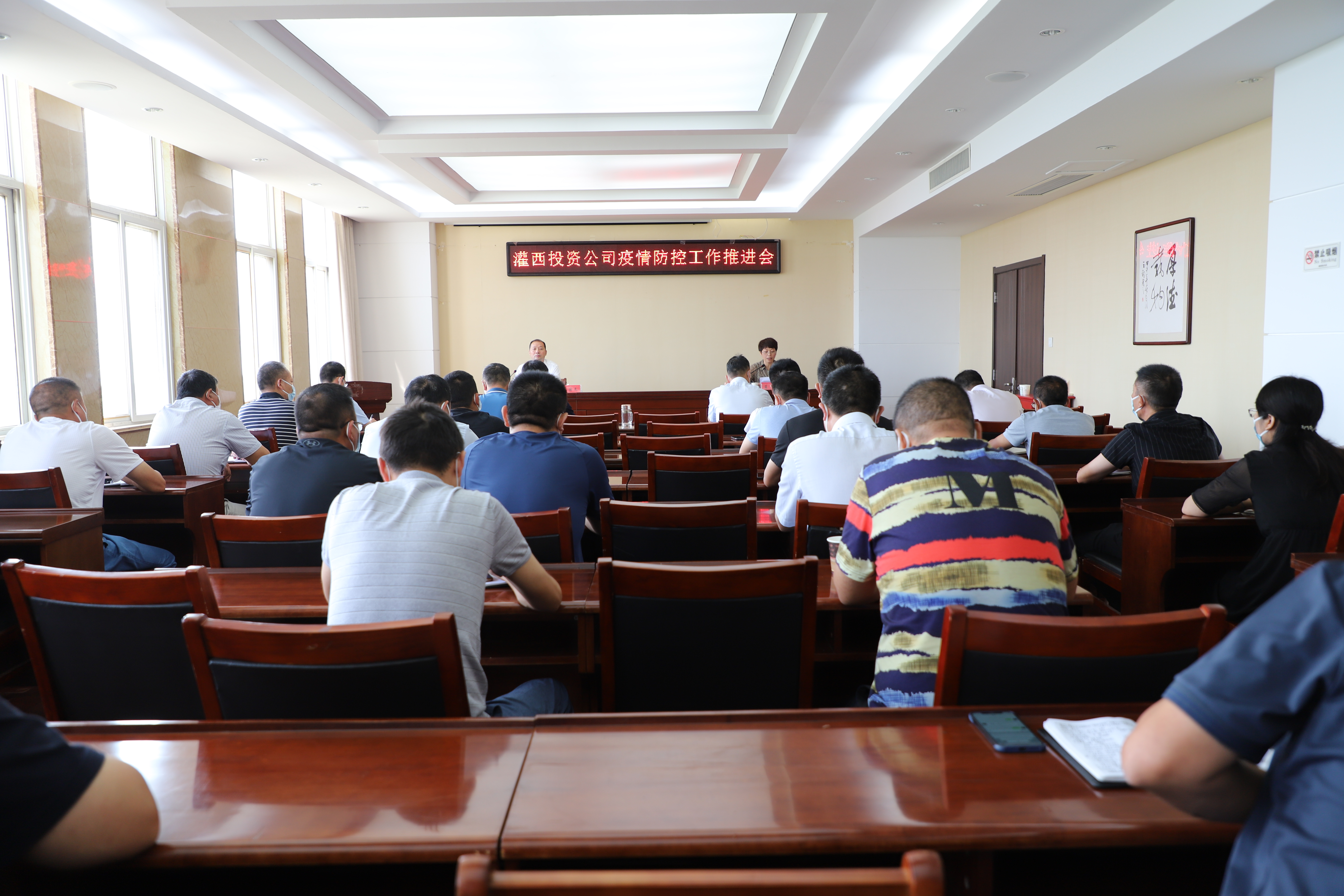 8月2日,灌西投资公司召开疫情防控推进会,公司领导班子全体成员及各单位党政负责人参加会议。