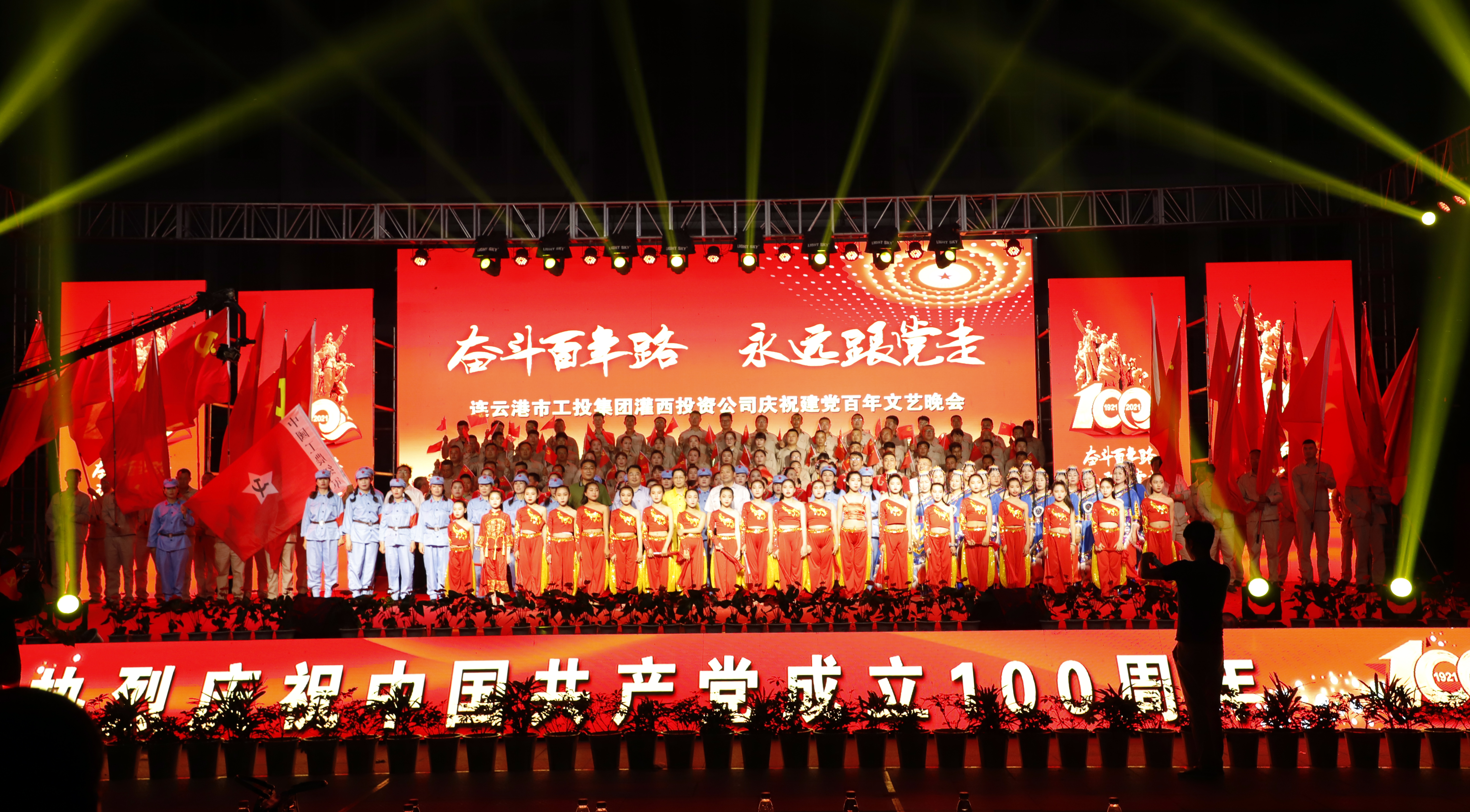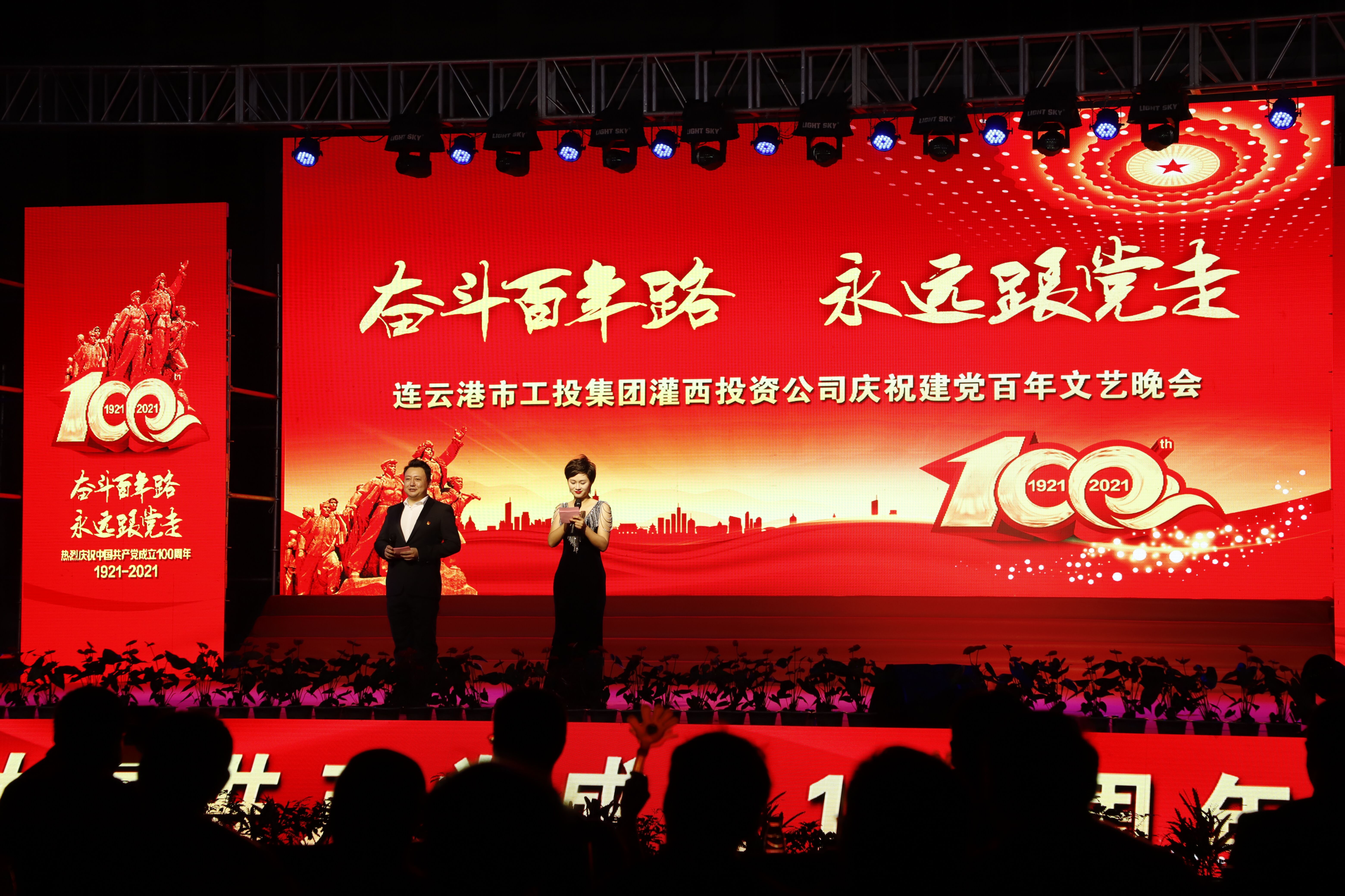 6月22日晚,灌西投资公司举办以“奋斗百年之路 永远跟党走”为主题的庆祝建党一百周年文艺晚会。三亿sanyi(中国)党委副书记戴鸿鸣、纪委书记汪群、工会主席刘承志等领导以及公司领导班子成员同1000多名职工群众一起观看演出。