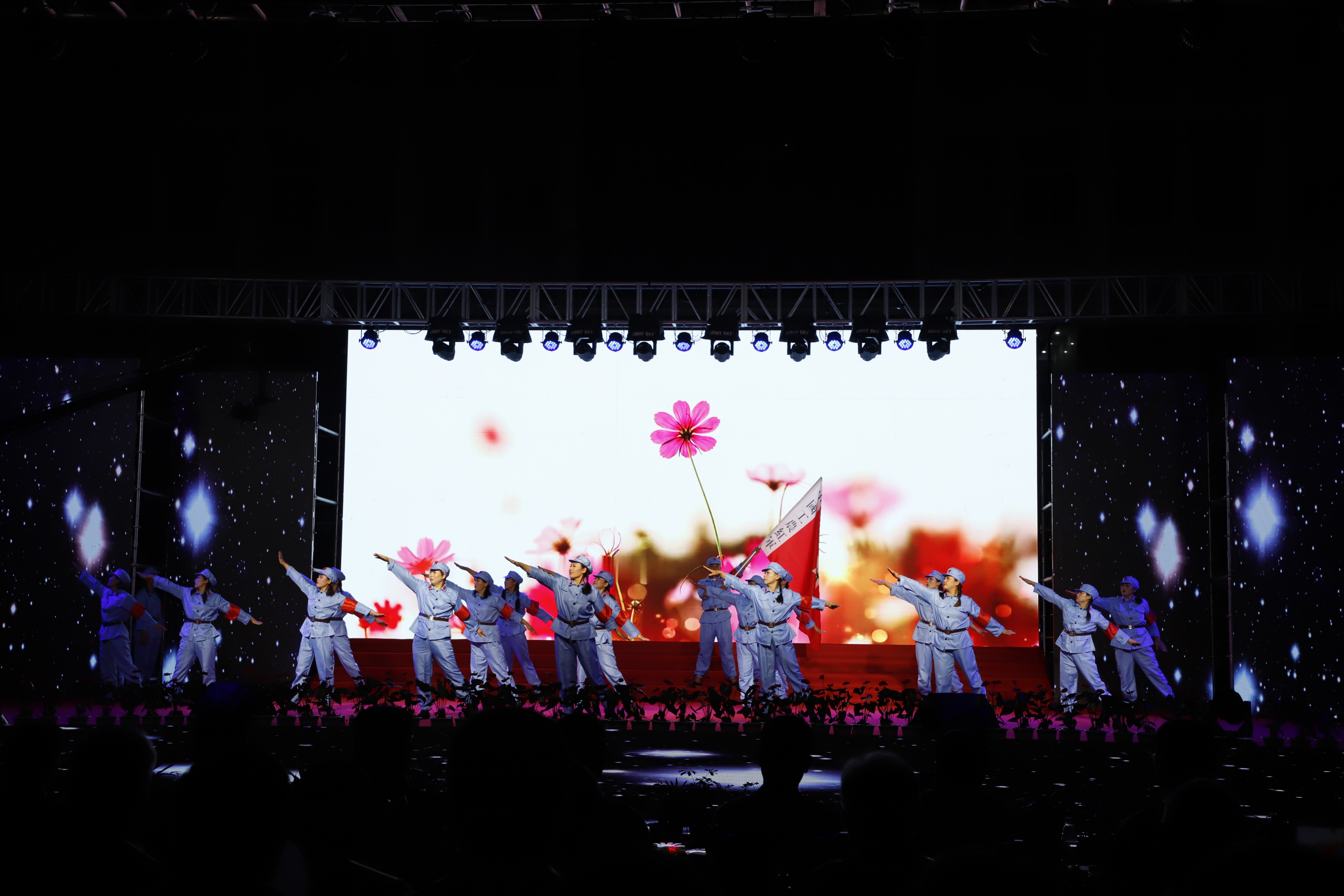 百年征程路漫漫,灿烂辉煌激人心,是中国共产党指给了人民解放的道路,领导中国走向光明,是中国共产党引领中华民族走向复兴之路,奋进新时代、开启新征程,最后,全场人员同唱《没有共产党就没有新中国》,10面国旗、10面党旗在挥舞,整个舞台成为一片红的海洋,整场晚会圆满落下帷幕。