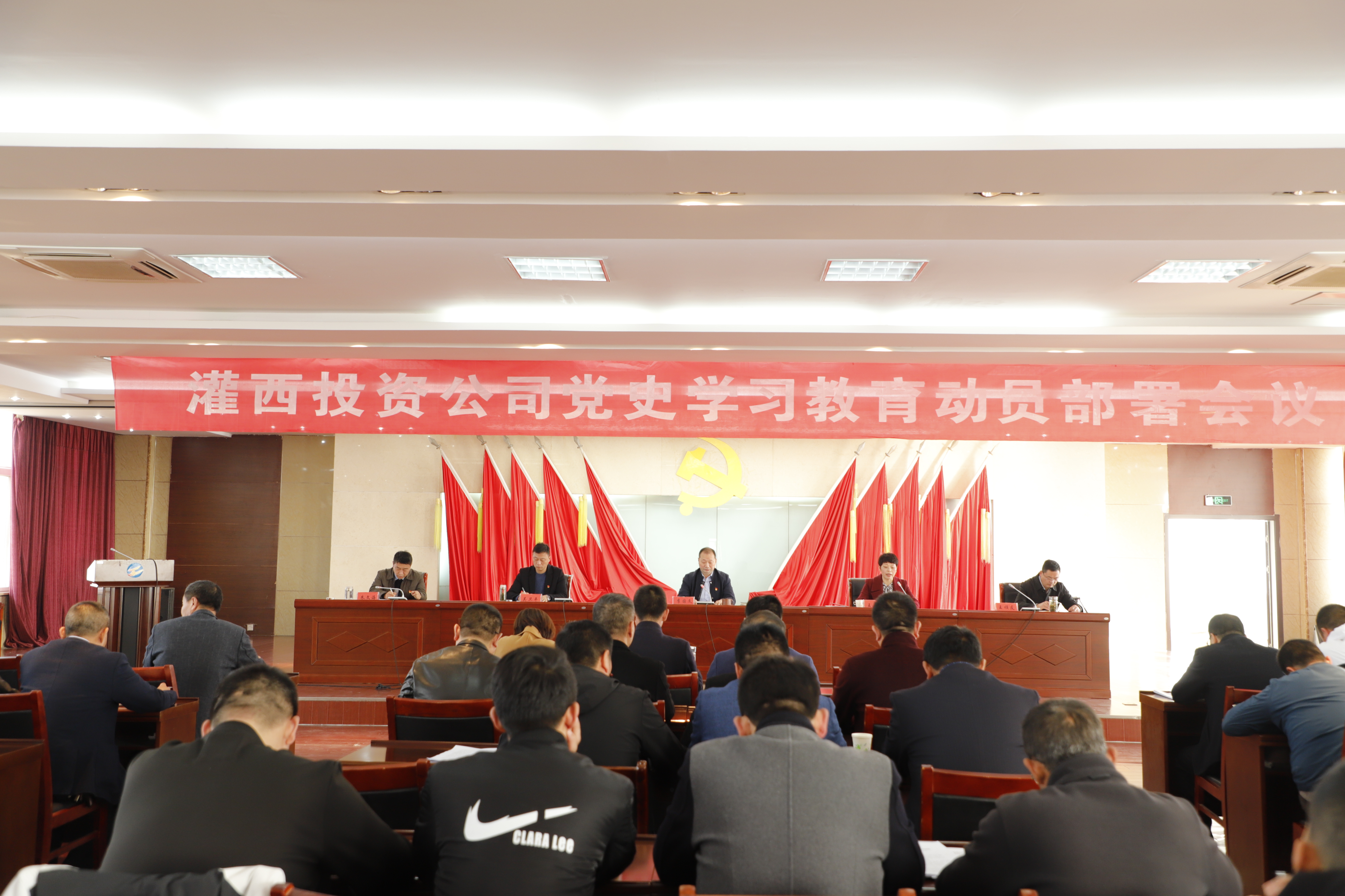 3月25日,灌西投资公司党史学习教育动员部署大会在机关五楼会议室召开,党委书记李国文作党史学习教育动员讲话。公司党委领导班子成员、各单位党政工负责人、机关全体党员参加会议。