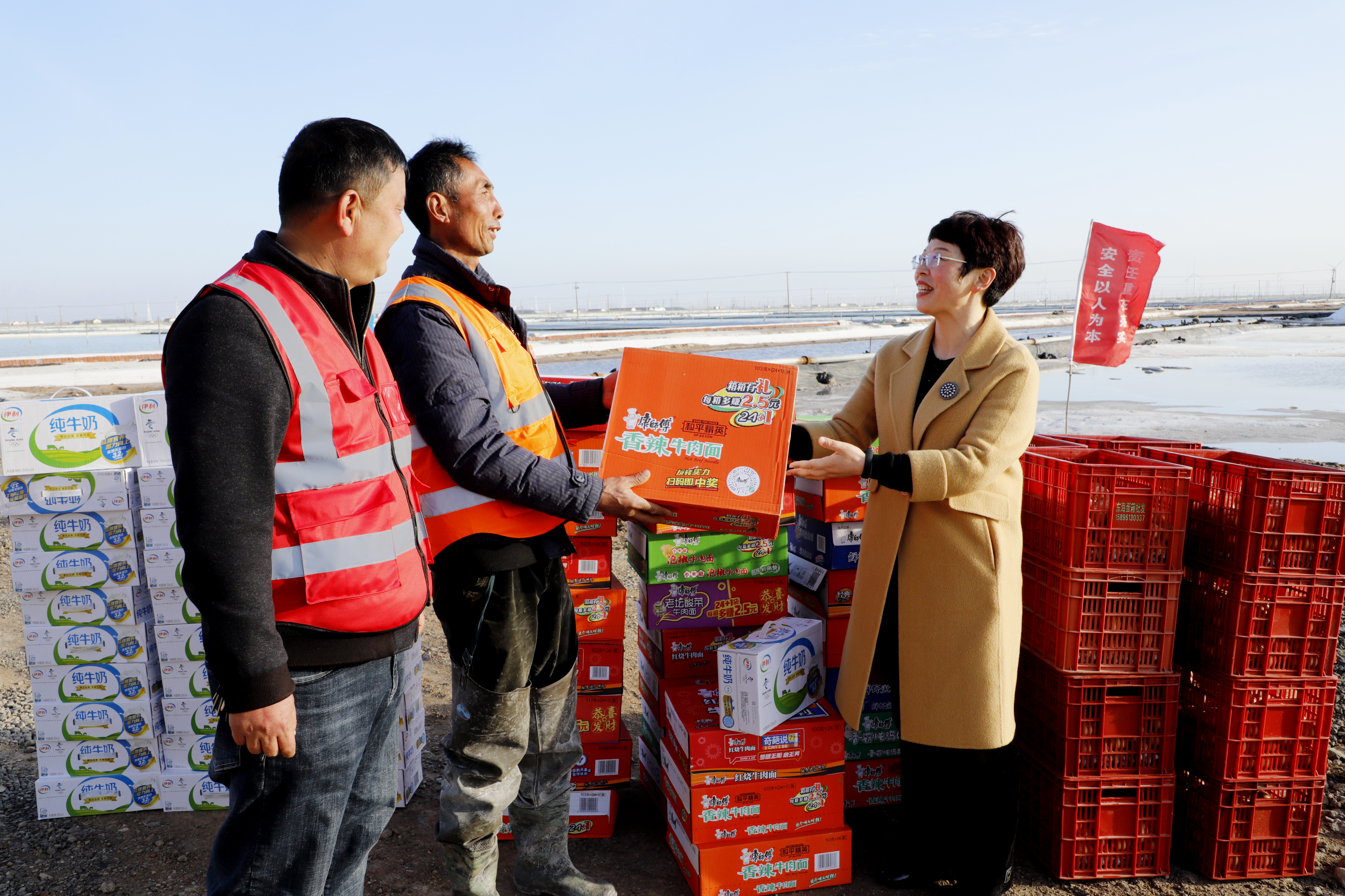 “你们辛苦了,我代表公司党委来看望大家。”每到一处,李国文都与扒盐现场职工握手问好,感谢广大职工在过去的一年为日晒制盐公司的原盐生产所付出的辛勤努力,同时嘱咐扒盐职工要增强责任感和警觉性,严格执行各项规章制度,切实保障扒盐期间的安全生产,并送上慰问品。