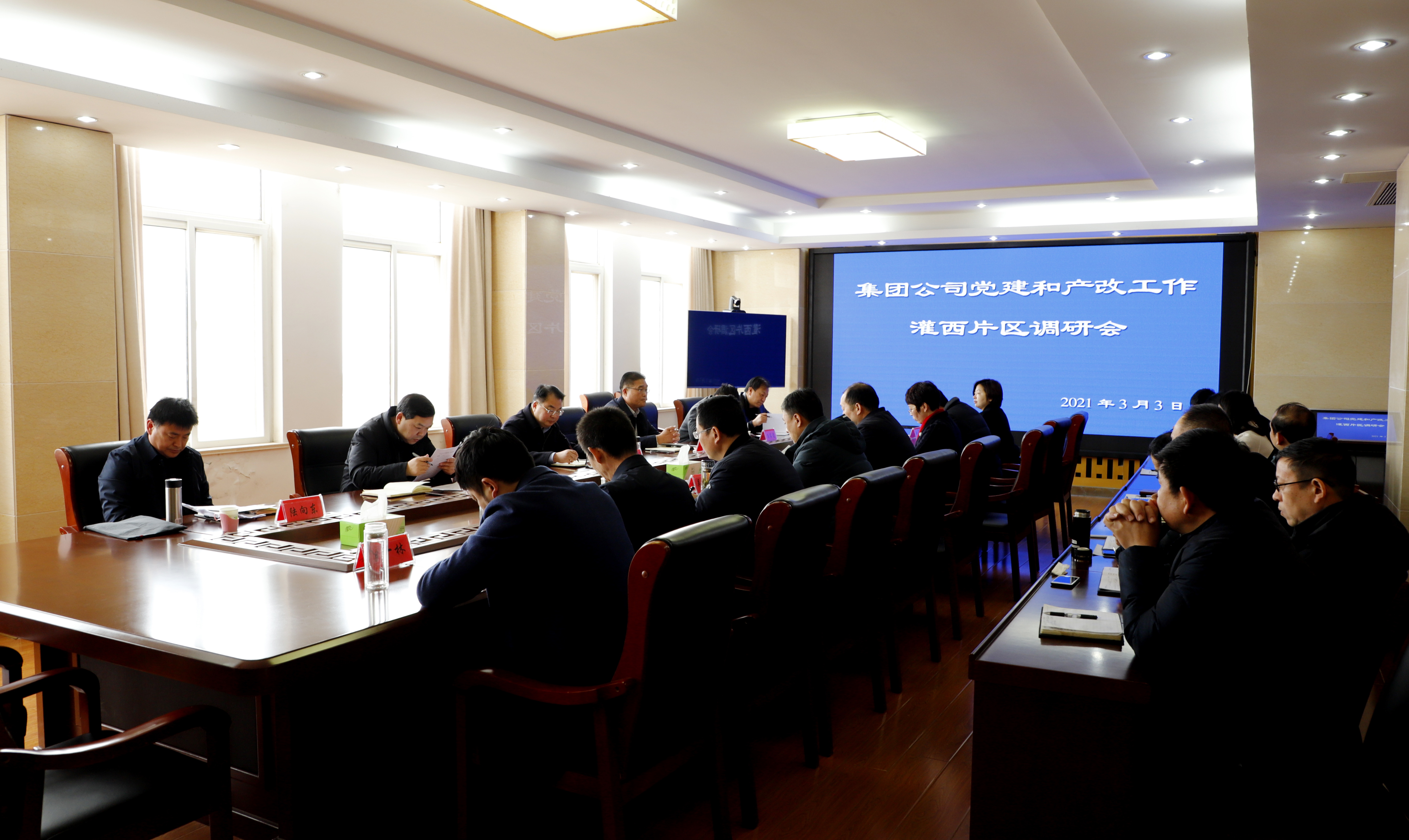 调研会上,戴鸿鸣一行首先认真听取了灌西党建和产改工作汇报,详细了解了节后经营生产和发展状况,党建品牌以及产业工人队伍建设的特色做法等。戴鸿鸣对灌西在党建和产改工作上的成绩给予了充分肯定。他指出,要总结经验、改革创新,在党员学习教育、员工队伍建设上,要进一步深化改革,把党建和产改工作做成灌西展示的窗口、对外的平台、产业的翘板、发展的动能。