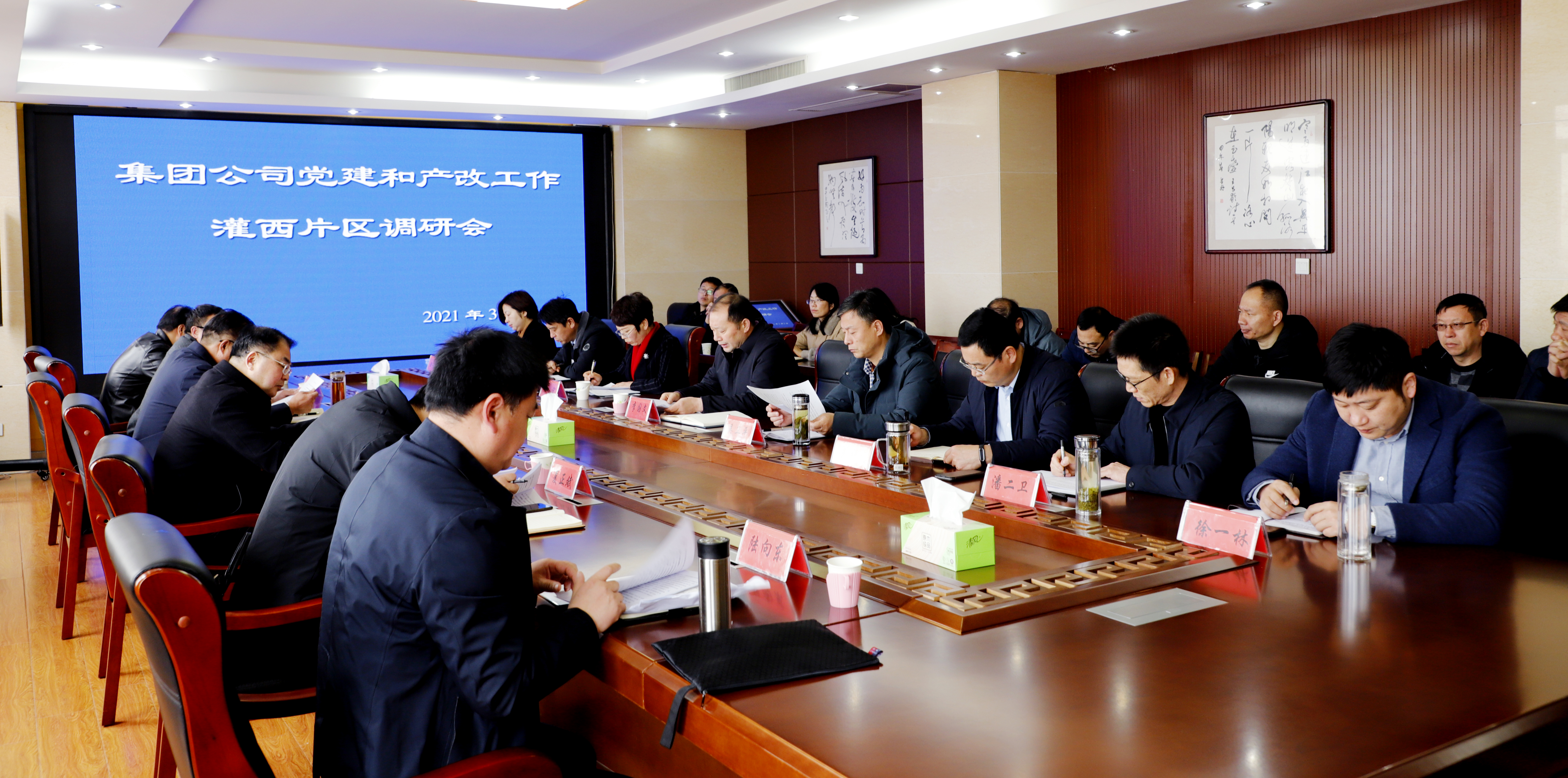 3月3日,三亿sanyi(中国)公司党委副书记戴鸿鸣、工会主席刘承志一行来灌西调研指导党建和产业工人队伍建设改革工作,灌西投资公司党委书记、董事长、总经理李国文及领导班子成员陪同调研。