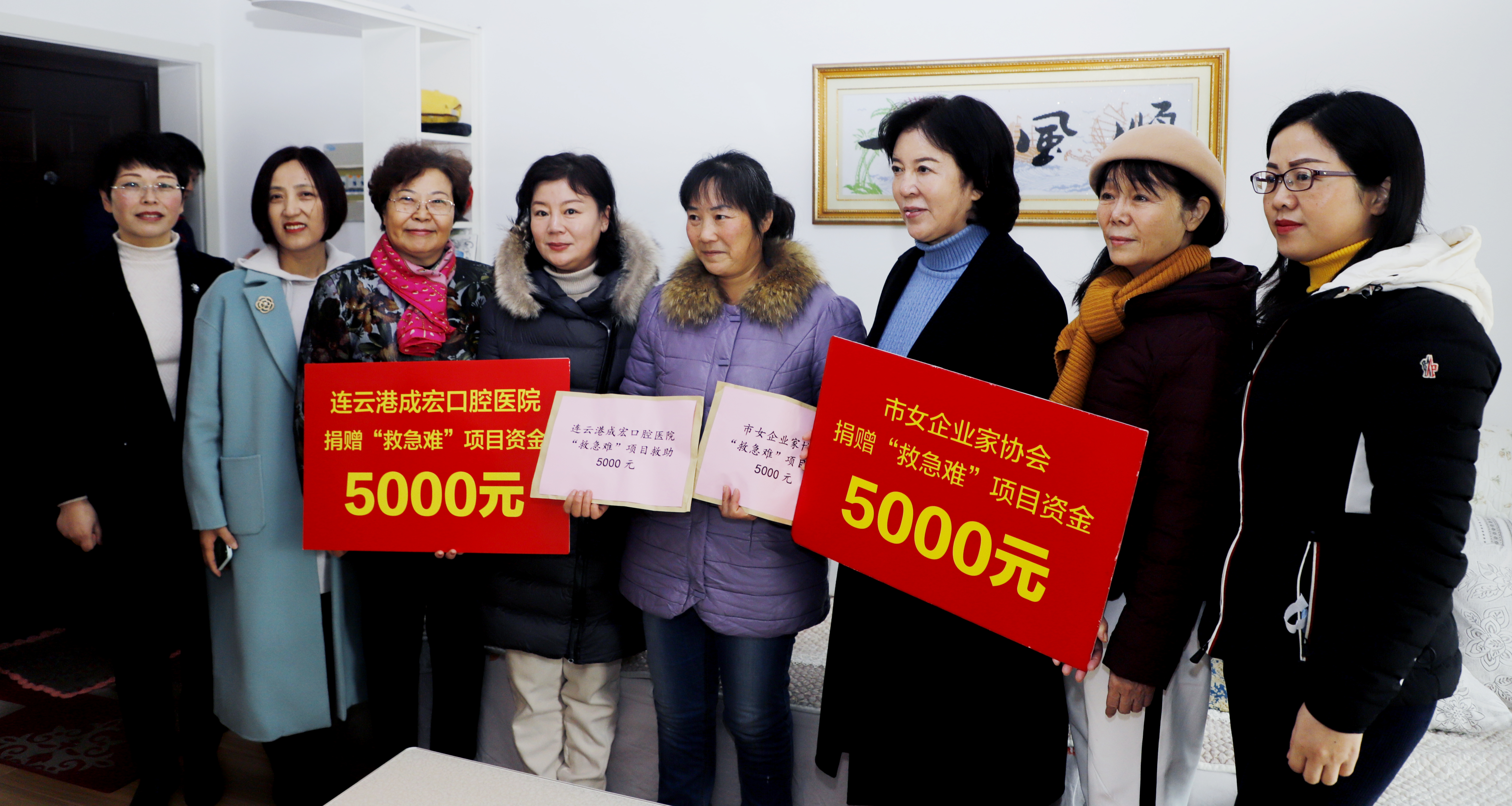 12月9日上午,连云港市慈善总会、市女企业家协会副会长卢宁、秘书长甄翔及市成宏口腔医院等爱心企业家代表在灌西公司工会主席王宏的陪同下看望公司困难职工张军连家庭,并送去市慈善总会、成宏口腔医院捐助的1万元慰问金。
