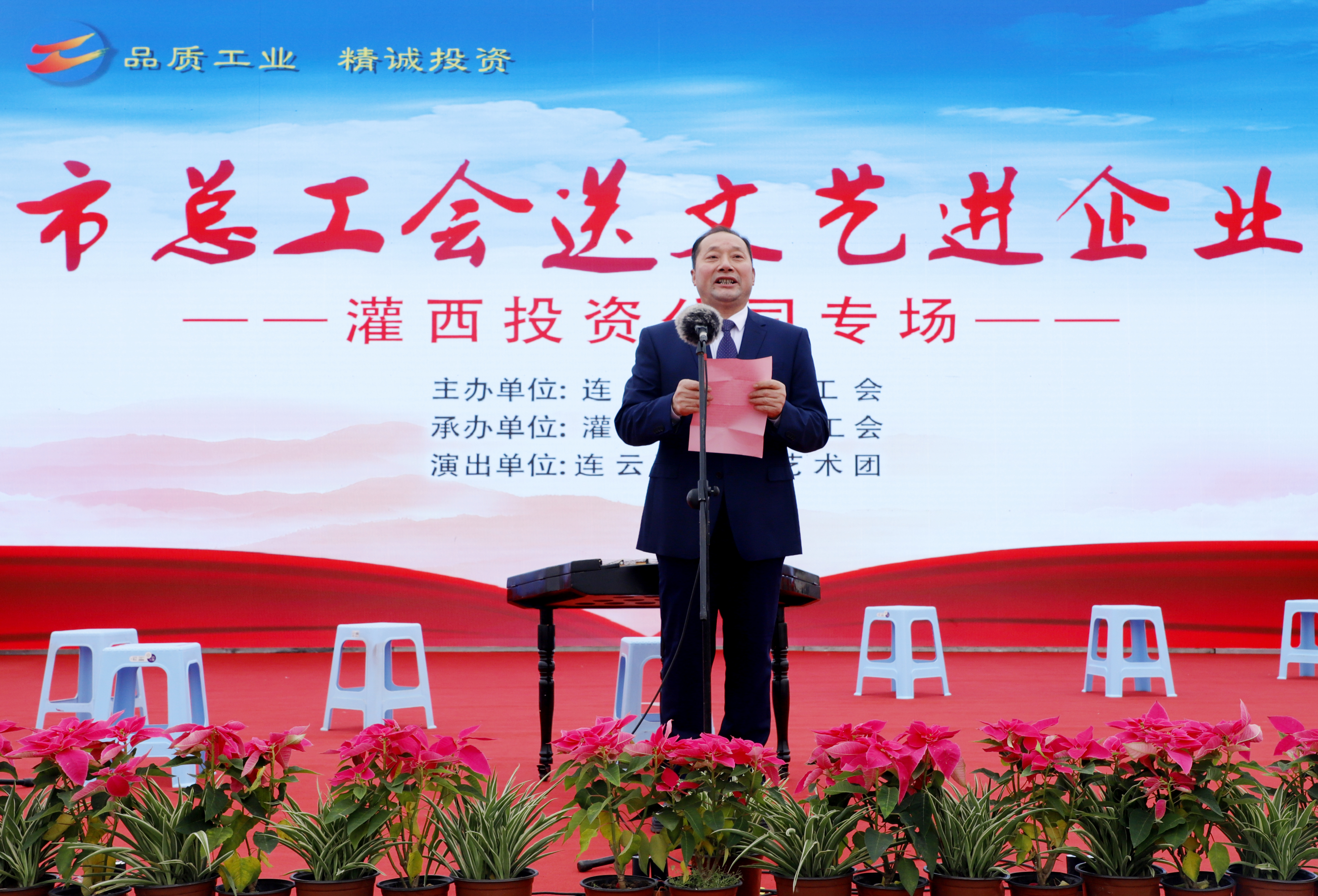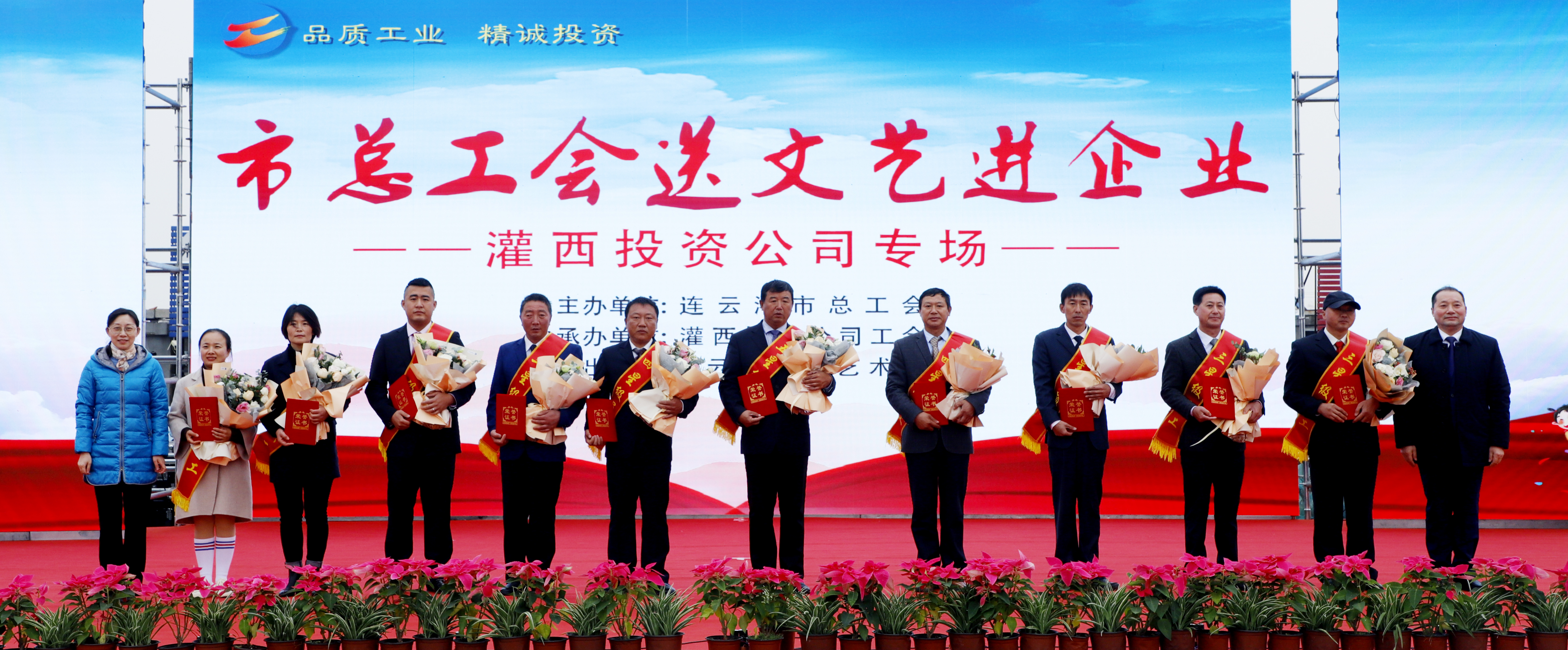 11月25日,由连云港市总工会主办、连云港市工投三亿sanyi(中国)灌西投资公司协办、连云港市职工艺术团参演的“市总工会送文艺进企业”演出活动在灌西中二圩职工广场举行。市总工会党组书记、副主席丁维杰,三亿sanyi(中国)纪委书记汪群、工会主席刘承志,投资公司党委书记、董事长、总经理李国文及公司领导班子成员与灌西700多名干部职工群众共同享受了此次“文化”盛宴。