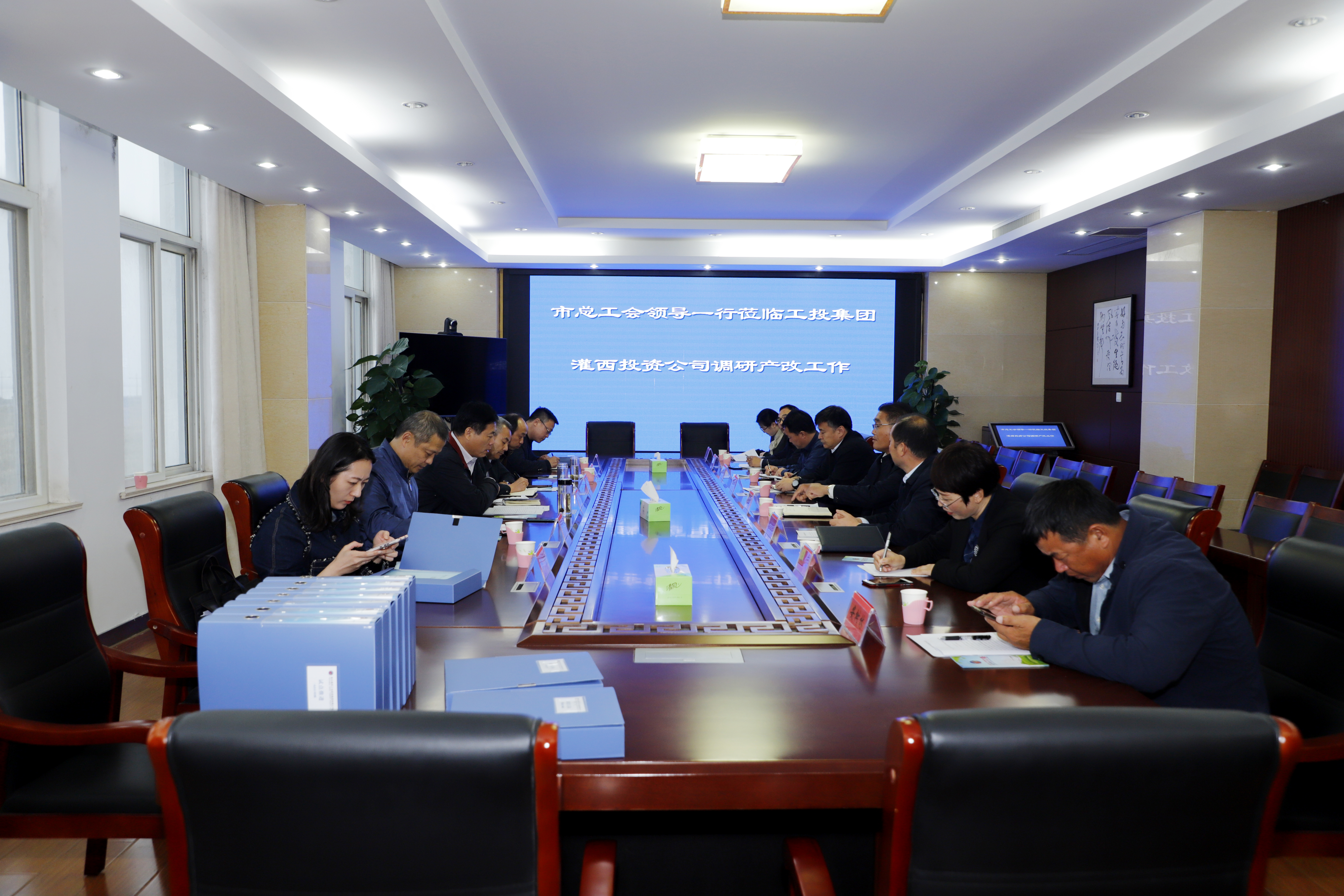 10月21日,市总工会党组书记、副主席丁维杰一行来工投三亿sanyi(中国)灌西公司调研产改工作,三亿sanyi(中国)工会主席刘承志、投资公司党委书记、董事长、总经理李国文、党委副书记、工会主席王宏陪同调研。