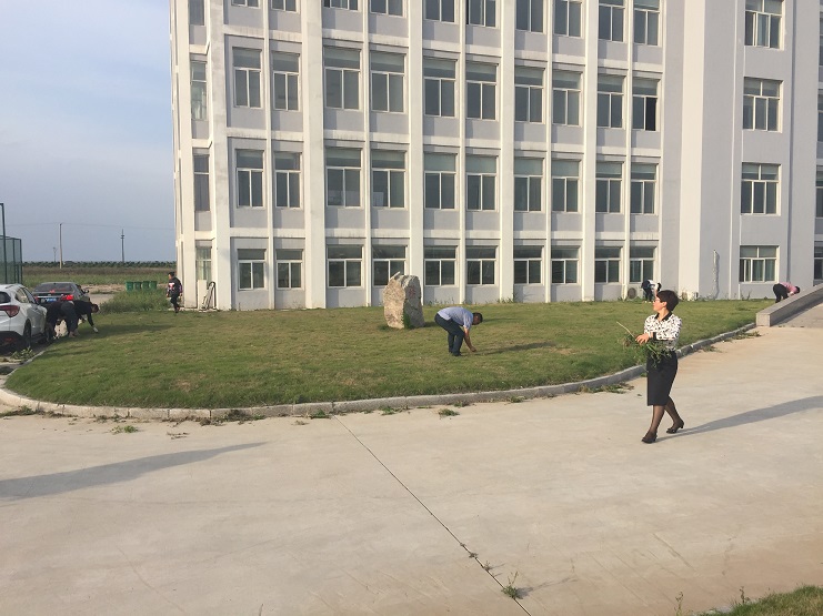 随着气温的升高,公司办公大楼前平整如毯的草坪,一段时间不处理就杂草丛生,影响美观,在机关党总支部的组织下,机关各部室工作人员利用下班前的半小时时间,众人齐上手,有的用手拔,有的拿着垃圾华袋,将杂草与垃圾往外清理,完全不顾手上沾满了又黑又黏的草汁,干得十分认真。