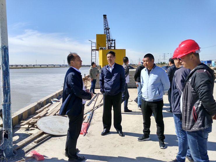 在宵洋五灌河码头施工现场,陈如军一行实地查看了码头二期项目工程建设的进展情况,听取了码头相关建设工作情况汇报,对工程施工中存在的几点问题现场进行了沟通处理。宵洋五灌河码头二期项目工程自开工以来,灌西投资公司专门成立工程指挥部,坚持规范操作、注重工程质量、强化安全督查,认真做好施工期间的各项工作。目前,码头的主体部分已经完成混凝土浇注,堆场地基正在进行平整,围墙、塔吊等配套设施设备也正在落实当中,预计10月底工程将基本完工。陈如军要求,工程越是到最后,越要注重安全施工,要严抓质量管理;各项工作都要早安排早落实,及时做好工程施工资料的收集整理,确保工程顺利通过验收。