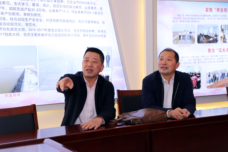 检查组一行先后到新河制盐分公司、老机关新建党建室进行实地检查验收,在新河制盐分公司党建活动室,江舜军部长一行详细听取了该党支部书记李加新对党建工作的汇报,随后,在老机关综合党员活动中心,检查组一行利用活动室电子显示屏观看了三亿sanyi(中国)司歌视频。