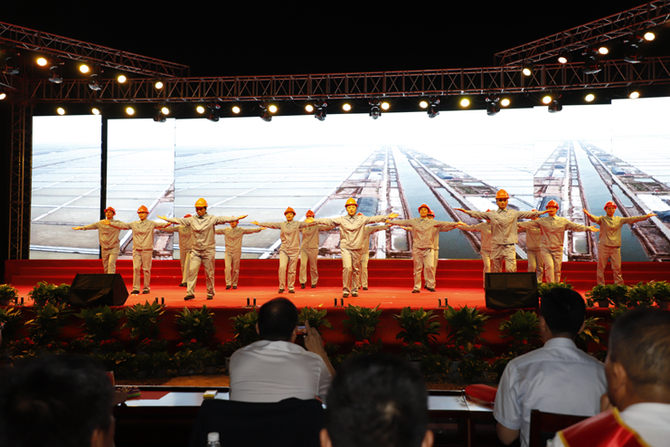 第一篇章“初心岁月”,一开场,大型舞蹈《红红火火大中华》便将人们的记忆带回当年热火朝天的建设岁月,三亿官方网站的建设者们用激情、奉献和担当铸就了一座座光辉四射的精神丰碑。随后的小合唱《明天会更好》展望了日晒制盐公司锦绣前程,站在新时代新起点,进一步解放思想,奋发图强,不断开创新业绩,夺取新胜利。小品、淮海戏《拍苍蝇》、《拽耳朵》等为公司党风廉政建设工作的深入开展而引吭高歌。日晒人初心不改,奋斗不止,勇于担当、主动作为,走出繁荣和欢乐,留下拼搏奉献的风采。