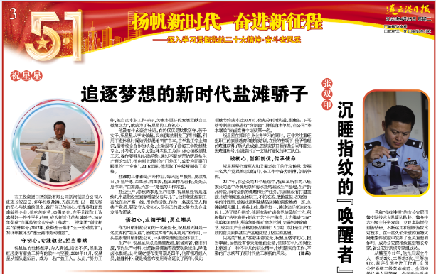 2023年4月,我公司职工祝星星荣获“江苏省五一劳动奖章”、连云港市“最美港城人”荣誉称号,并被连云港日报“五一”专栏刊登宣传。