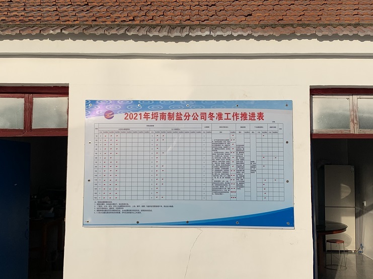冬季是日晒制盐收储卤水、扒土塘、整理滩场文明的最佳时期,也是为2022年工作起好头、迈好步的关键时期,为更好落实“冬准”大会会议精神,12月6日上午,埒南制盐公司制定冬准工作推进表,张贴在公司办公区域墙面上,成立“指挥部”挂图作战,打好冬准战役促。