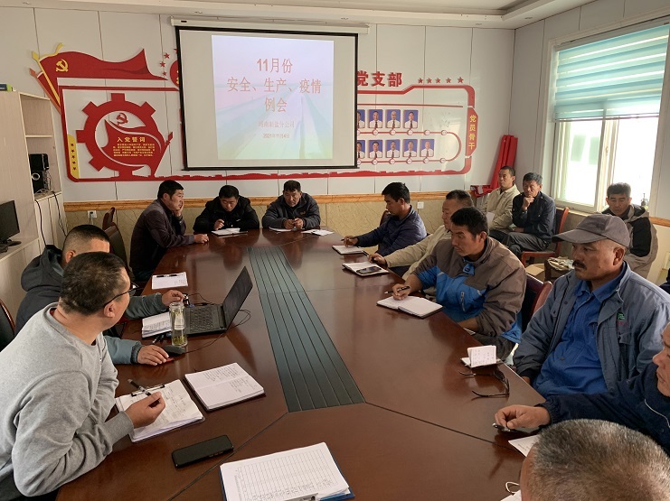 会议从安全、生产、疫情三个方面展开。公司经理程龙指出,本周为职工年休假调休时间,全体班组长要高度重视假期的安全问题,针对安全“突击月”中存在的问题全部整改落实到位,并做好隐患监察工作,做好假期间的安全值班工作,保证班组生产生活正常运行。对休假在家的职工班组长要做好休假期间的消防安全宣传工作。